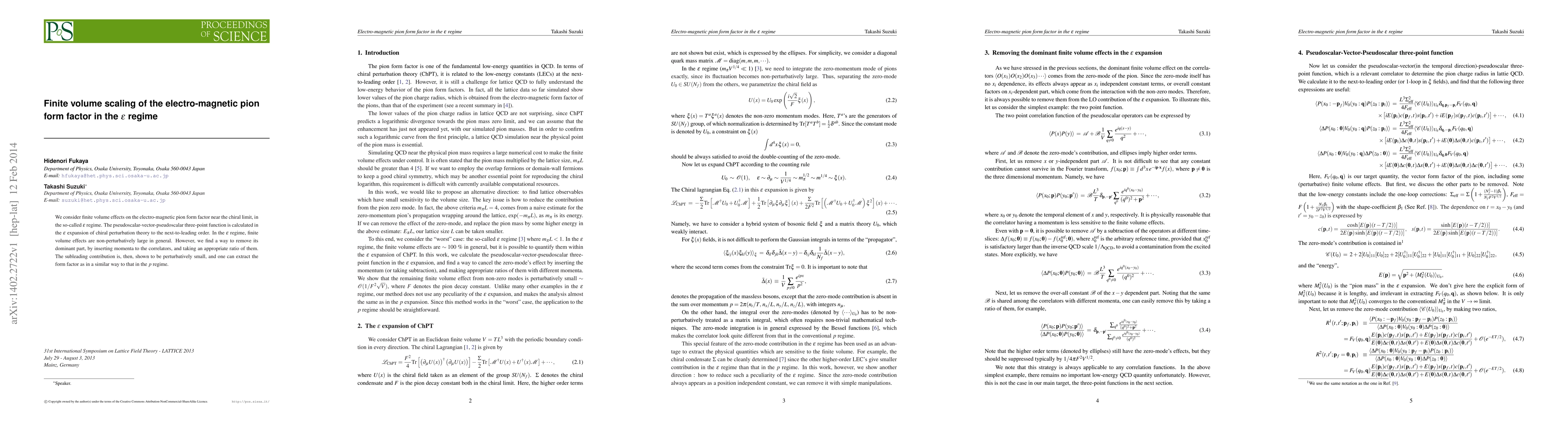 This paper investigates finite volume effects on the electro-magnetic pion form factor in the $\epsilon$ regime, employing chiral perturbation theory. The authors develop a method to isolate and diminish the dominant non-perturbative effects, revealing that the subleading contributions are perturbatively small, allowing for the extraction of the form factor.