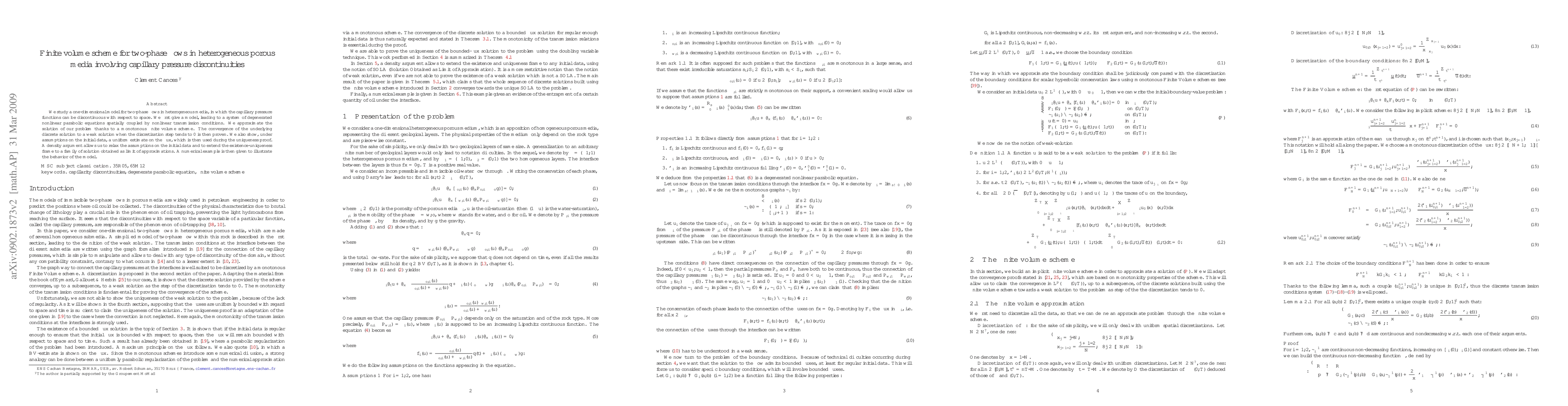This paper develops a finite volume scheme for modeling two-phase flows in heterogeneous porous media with discontinuous capillary pressure. The authors prove the scheme's convergence to a weak solution and demonstrate the existence and uniqueness of solutions under certain conditions, with a numerical example illustrating the model's behavior.