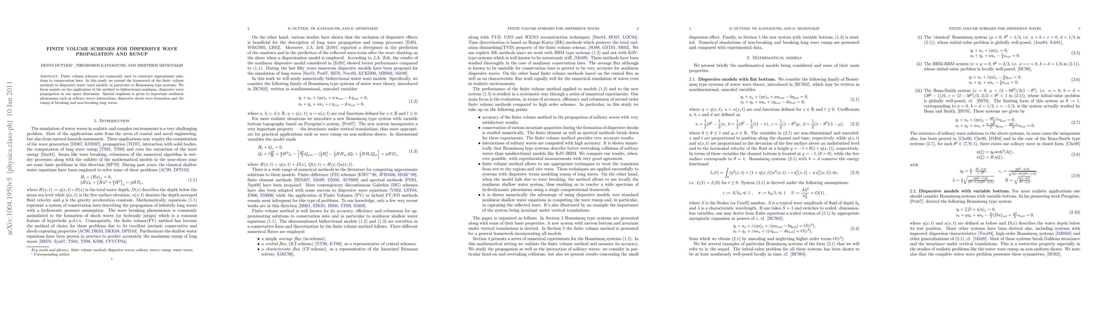 This paper extends finite volume schemes to dispersive water wave models, specifically Boussinesq type systems, to simulate bidirectional nonlinear dispersive wave propagation. It highlights the application of the method to study phenomena like solitary wave interactions, dispersive shock wave formation, and wave runup.