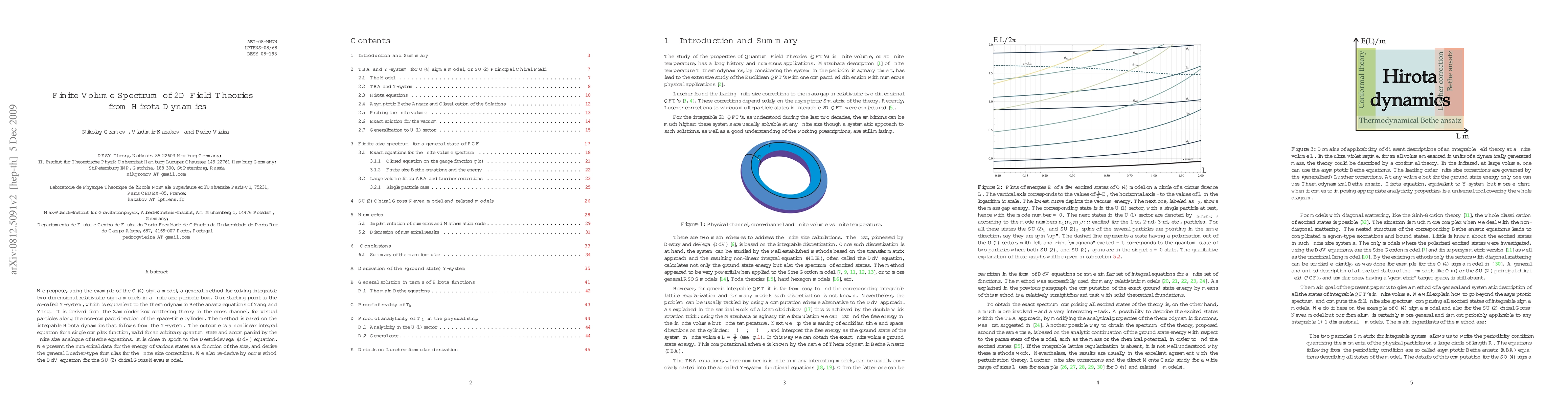 We propose, using the example of the O(4) sigma model, a general method for solving integrable two dimensional relativistic sigma models in a finite size periodic box. Our starting point is the so-called Y-system, which is equivalent to the thermodynamic Bethe ansatz equations of Yang and Yang. It is derived from the Zamolodchikov scattering theory in the cross channel, for virtual particles along the non-compact direction of the space-time cylinder. The method is based on the integrable Hirota dynamics that follows from the Y-system. The outcome is a nonlinear integral equation for a single complex function, valid for an arbitrary quantum state and accompanied by the finite size analogue of Bethe equations. It is close in spirit to the Destri-deVega (DdV) equation. We present the numerical data for the energy of various states as a function of the size, and derive the general Luscher-type formulas for the finite size corrections. We also re-derive by our method the DdV equation for the SU(2) chiral Gross-Neveu model.
