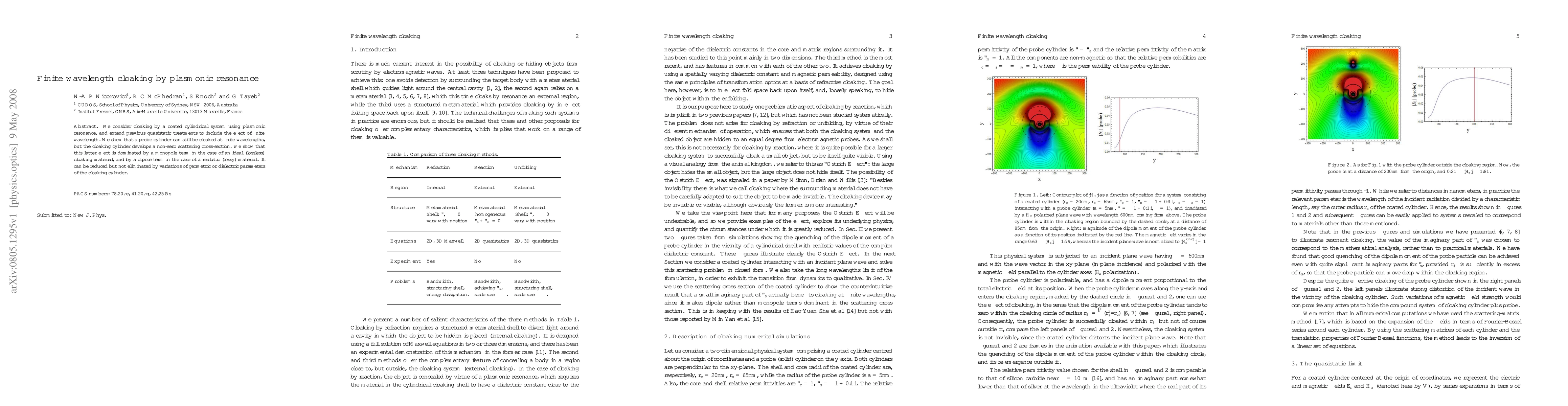 We consider cloaking by a coated cylindrical system using plasmonic resonance, and extend previous quasistatic treatments to include the effect of finite wavelength. We show that a probe cylinder can still be cloaked at finite wavelengths, but the cloaking cylinder develops a non-zero scattering cross-section. We show that this latter effect is dominated by a monopole term in the case of an ideal (lossless) cloaking material, and by a dipole term in the case of a realistic (lossy) material. It can be reduced but not eliminated by variations of geometric or dielectric parameters of the cloaking cylinder.