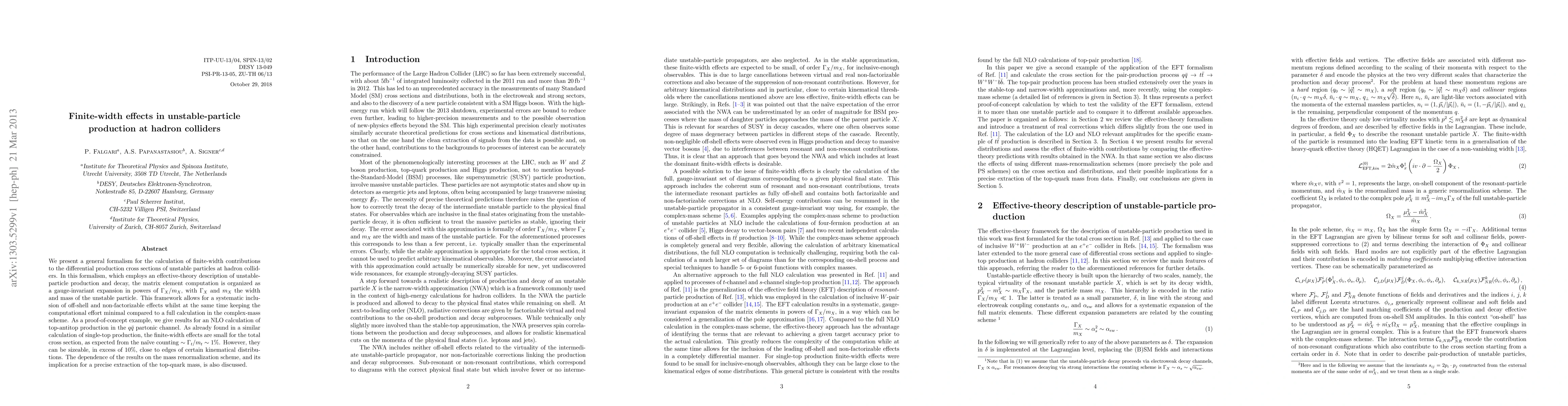 This paper develops a formalism for calculating finite-width contributions to the production cross sections of unstable particles at hadron colliders, showing minimal computational effort. It finds that while these effects are small for total cross sections, they can be significant near kinematical distribution edges, impacting precise top-quark mass extraction.
