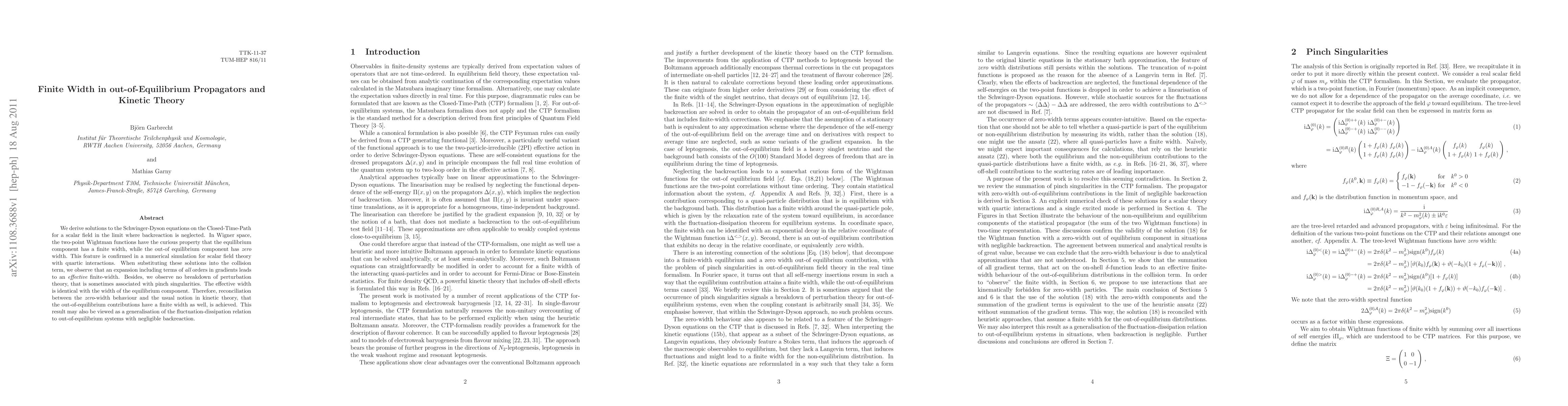 We derive solutions to the Schwinger-Dyson equations on the Closed-Time-Path for a scalar field in the limit where backreaction is neglected. In Wigner space, the two-point Wightman functions have the curious property that the equilibrium component has a finite width, while the out-of equilibrium component has zero width. This feature is confirmed in a numerical simulation for scalar field theory with quartic interactions. When substituting these solutions into the collision term, we observe that an expansion including terms of all orders in gradients leads to an effective finite-width. Besides, we observe no breakdown of perturbation theory, that is sometimes associated with pinch singularities. The effective width is identical with the width of the equilibrium component. Therefore, reconciliation between the zero-width behaviour and the usual notion in kinetic theory, that the out-of-equilibrium contributions have a finite width as well, is achieved. This result may also be viewed as a generalisation of the fluctuation-dissipation relation to out-of-equilibrium systems with negligible backreaction.