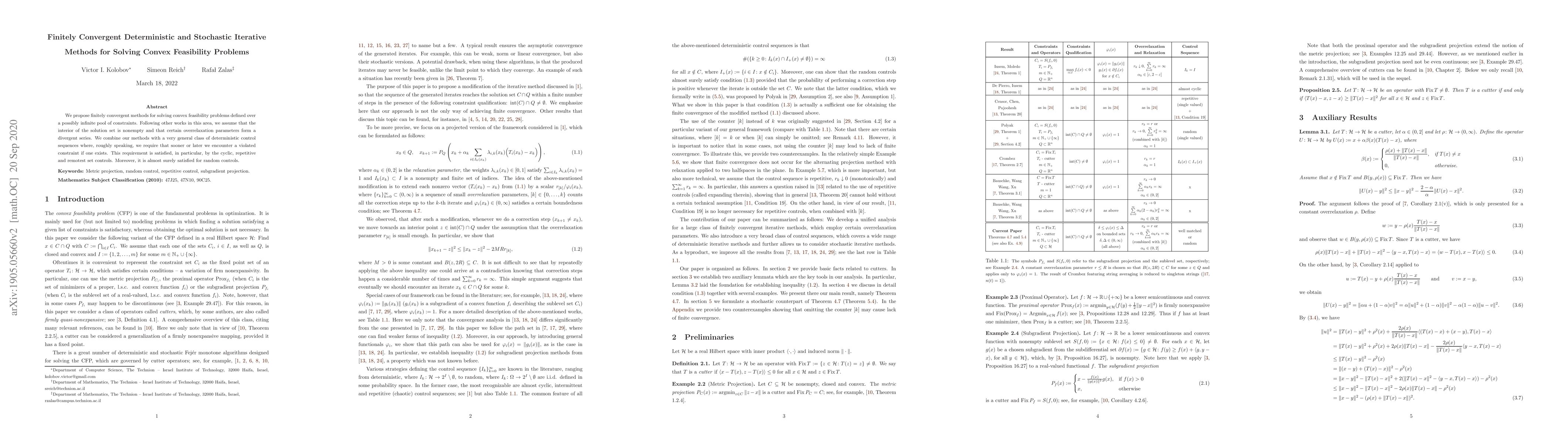 This paper introduces finitely convergent deterministic and stochastic iterative methods for solving convex feasibility problems, combining them with a broad class of control sequences that ensure encountering violated constraints eventually, thereby guaranteeing almost sure convergence.