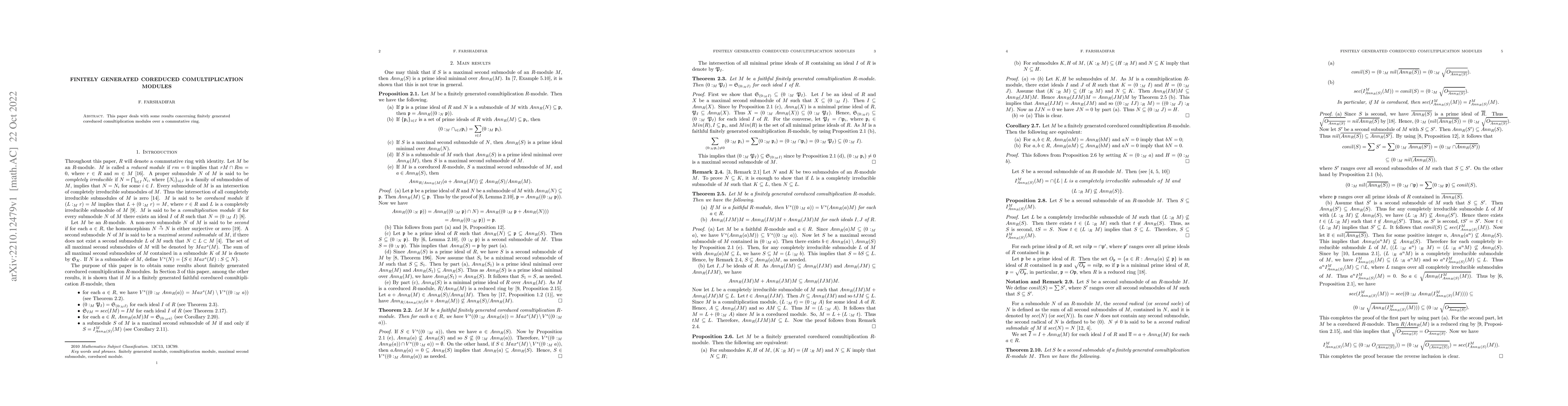 This paper explores the properties and results of finitely generated coreduced comultiplication modules in the context of a commutative ring, providing new insights into their structure and behavior.