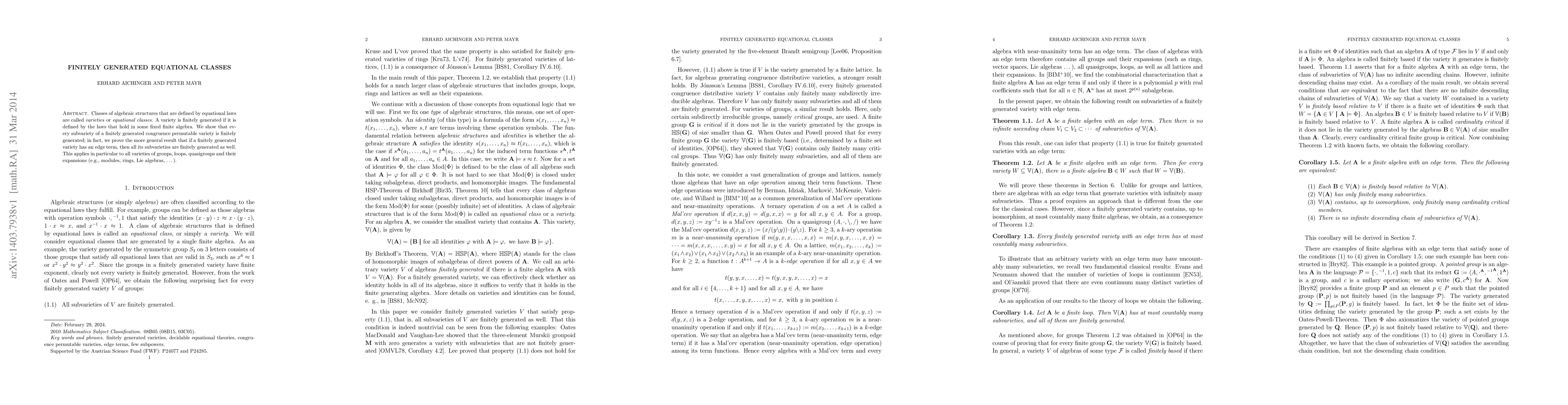 Classes of algebraic structures that are defined by equational laws are called varieties or equational classes. A variety is finitely generated if it is defined by the laws that hold in some fixed finite algebra. We show that every subvariety of a finitely generated congruence permutable variety is finitely generated; in fact, we prove the more general result that if a finitely generated variety has an edge term, then all its subvarieties are finitely generated as well. This applies in particular to all varieties of groups, loops, quasigroups and their expansions (e.g., modules, rings, Lie algebras,...).