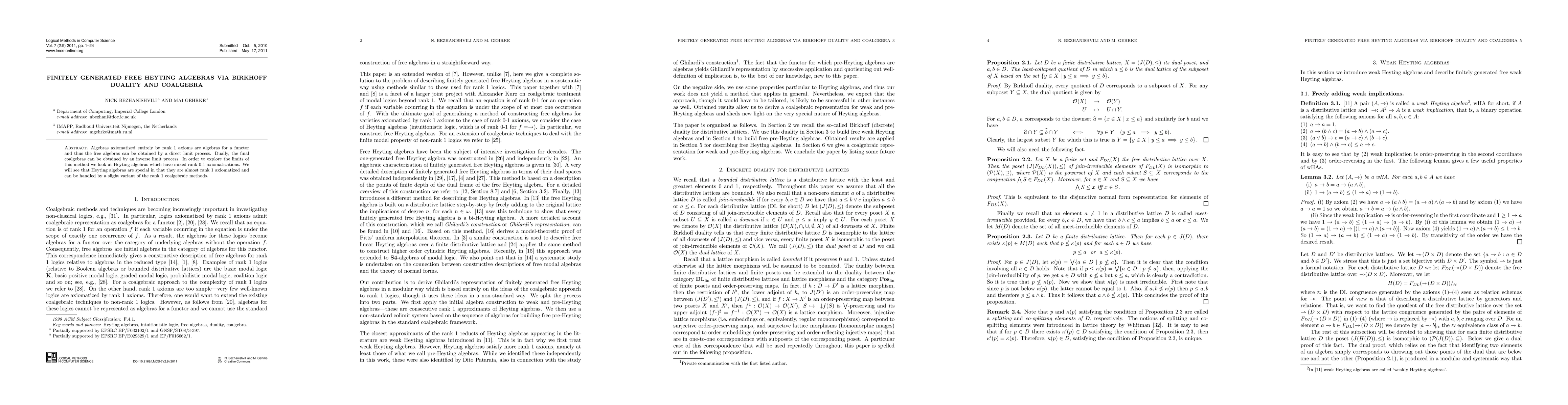 Algebras axiomatized entirely by rank 1 axioms are algebras for a functor and thus the free algebras can be obtained by a direct limit process. Dually, the final coalgebras can be obtained by an inverse limit process. In order to explore the limits of this method we look at Heyting algebras which have mixed rank 0-1 axiomatizations. We will see that Heyting algebras are special in that they are almost rank 1 axiomatized and can be handled by a slight variant of the rank 1 coalgebraic methods.
