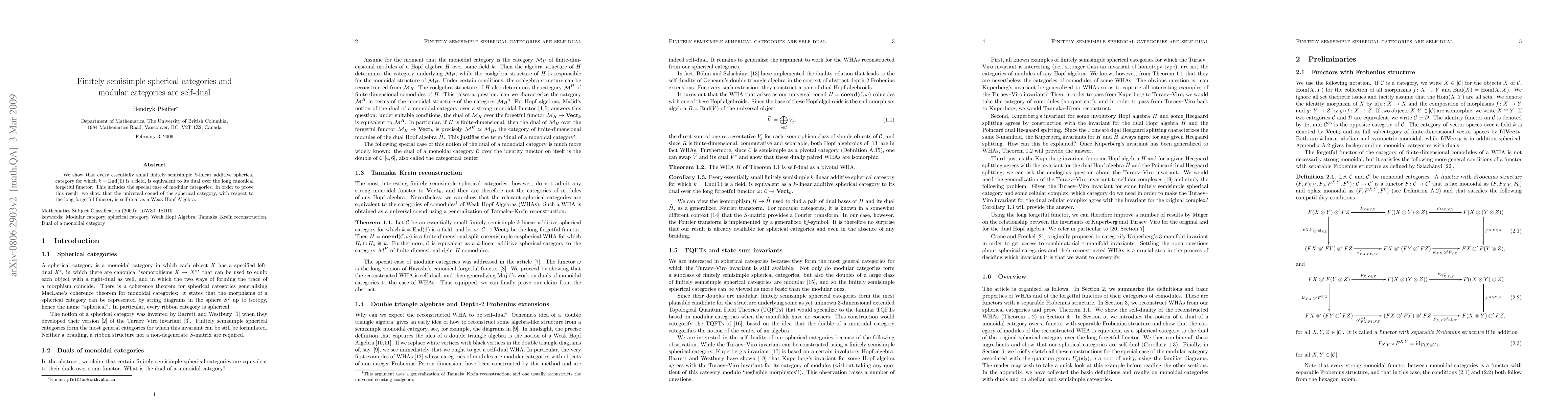 A new study shows that finitely semisimple spherical categories, including modular categories, are equivalent to their duals when the category has a field as its endomorphism algebra.