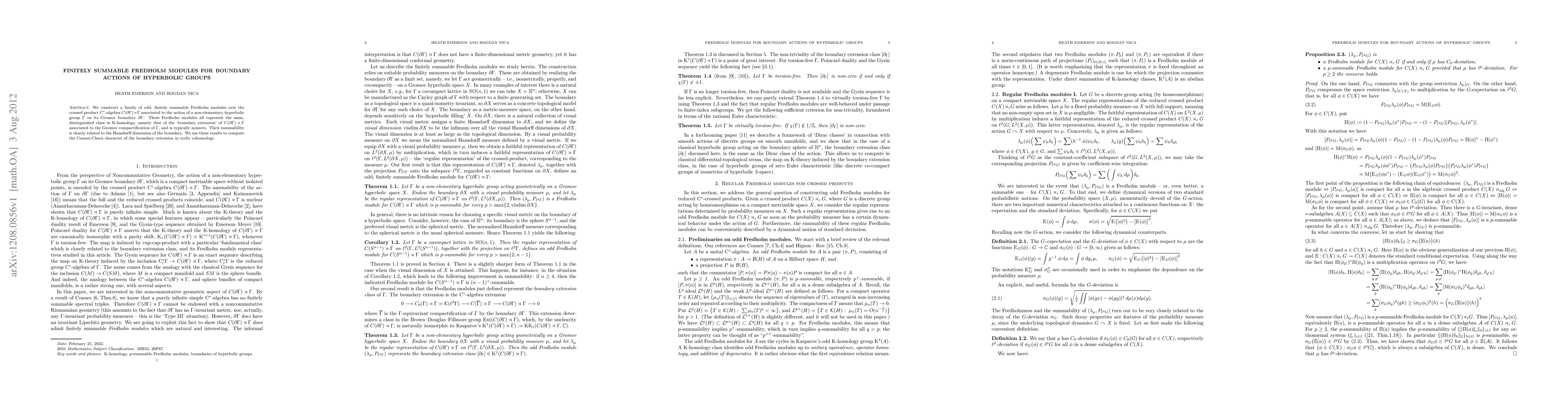 Summary: The paper constructs finitely summable Fredholm modules over a crossed product C*-algebra for hyperbolic groups, demonstrating their summability relates to the boundary's Hausdorff dimension and computing the Connes-Chern character in cyclic cohomology.