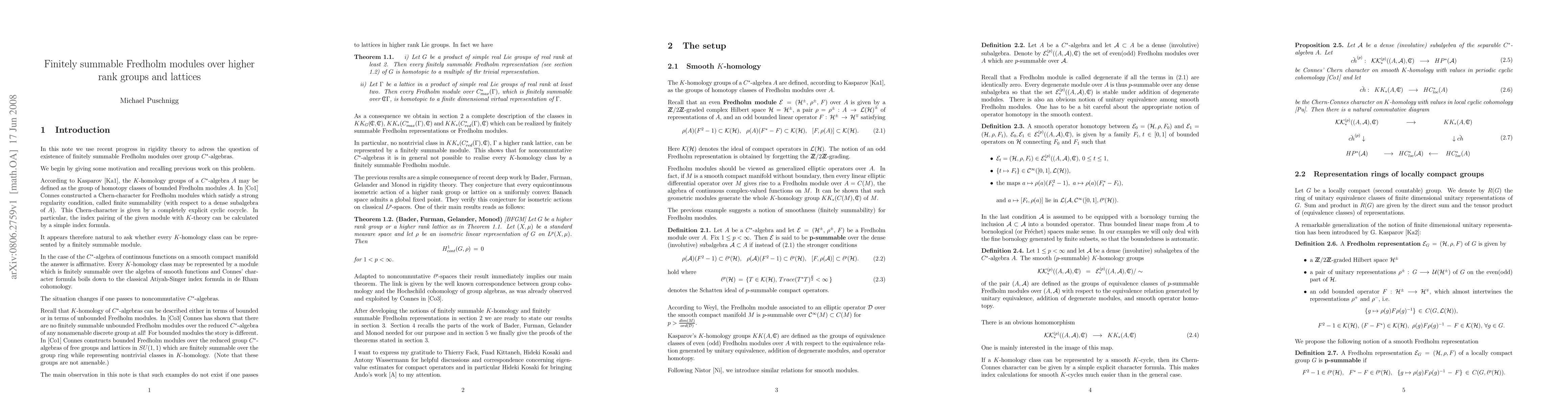 This paper classifies finitely summable Fredholm modules over higher rank groups and lattices, utilizing results from Bader, Furman, Gelander, and Monod on Kazhdan's property T for locally compact groups. The classification is complete up to smooth homotopy.