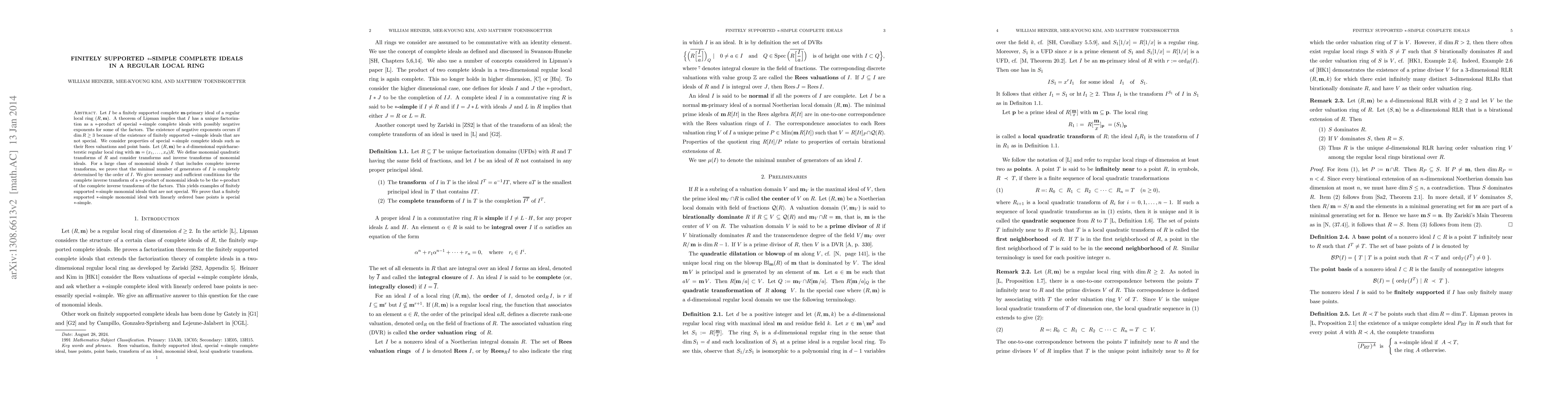 This research paper explores properties of finitely supported complete ideals in regular local rings, focusing on special *-simple complete ideals and their Rees valuations, with implications for monomial ideals and complete inverse transforms.