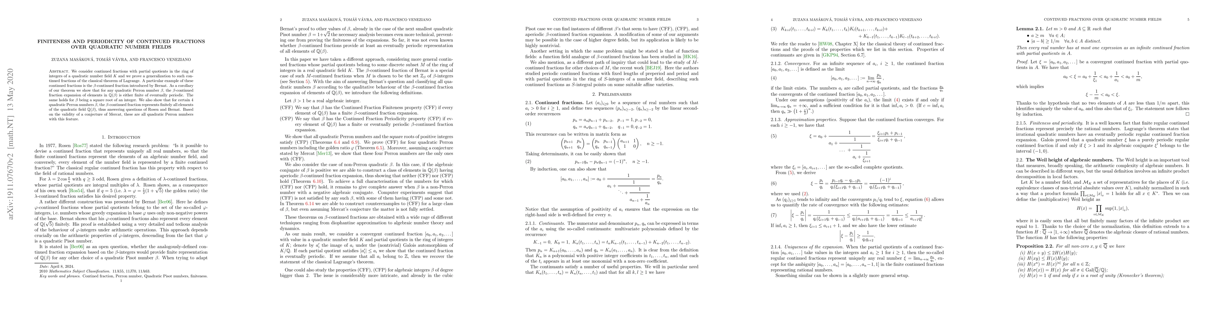 This paper generalizes Lagrange's theorem to continued fractions with partial quotients in quadratic number fields, proving that $\beta$-continued fraction expansions for quadratic Perron numbers $\beta$ are either finite or eventually periodic. It also addresses a conjecture by Mercat, showing that specific quadratic Perron numbers uniquely represent all elements in their associated quadratic fields.