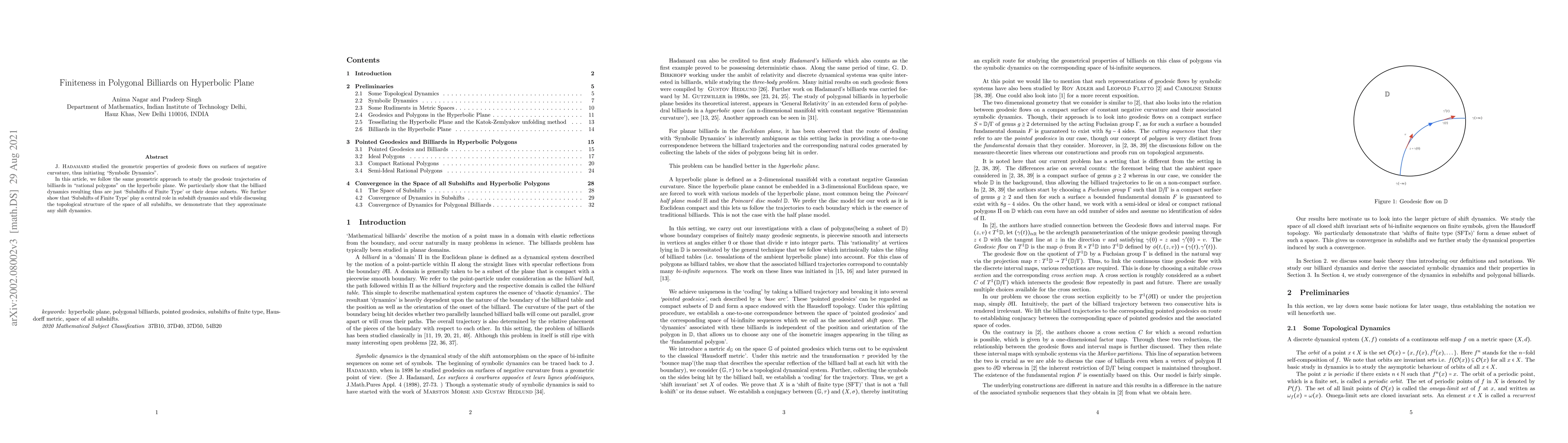 \textsc{J. Hadamard} studied the geometric properties of geodesic flows on surfaces of negative curvature, thus initiating "Symbolic Dynamics". In this article, we follow the same geometric approach to study the geodesic trajectories of billiards in "rational polygons" on the hyperbolic plane. We particularly show that the billiard dynamics resulting thus are just 'Subshifts of Finite Type' or their dense subsets. We further show that 'Subshifts of Finite Type' play a central role in subshift dynamics and while discussing the topological structure of the space of all subshifts, we demonstrate that they approximate any shift dynamics.