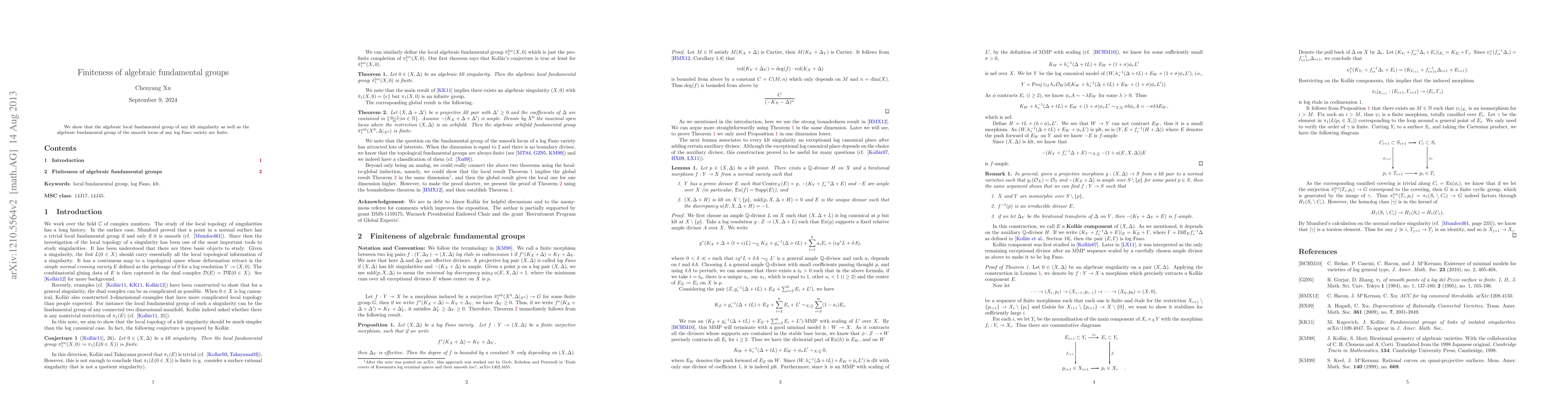 Researchers prove that specific types of mathematical singularities have finite algebraic fundamental groups, which has implications for understanding their properties.