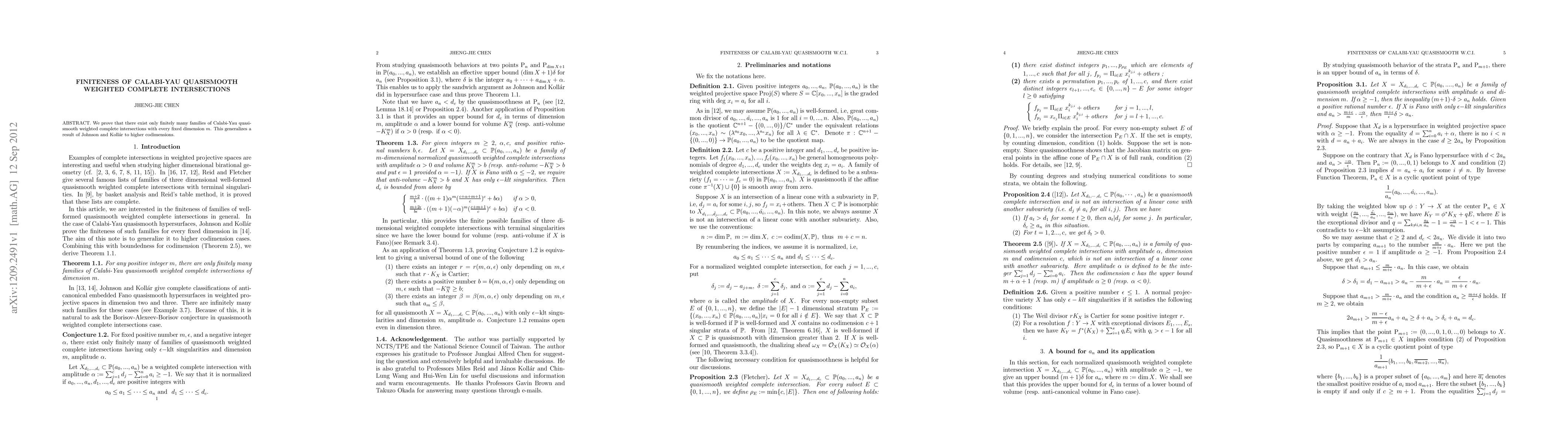 Summary: This paper proves the finiteness of families of Calabi-Yau quasismooth weighted complete intersections for any fixed dimension, extending a previous result by Johnson and Kollár to higher codimensions.