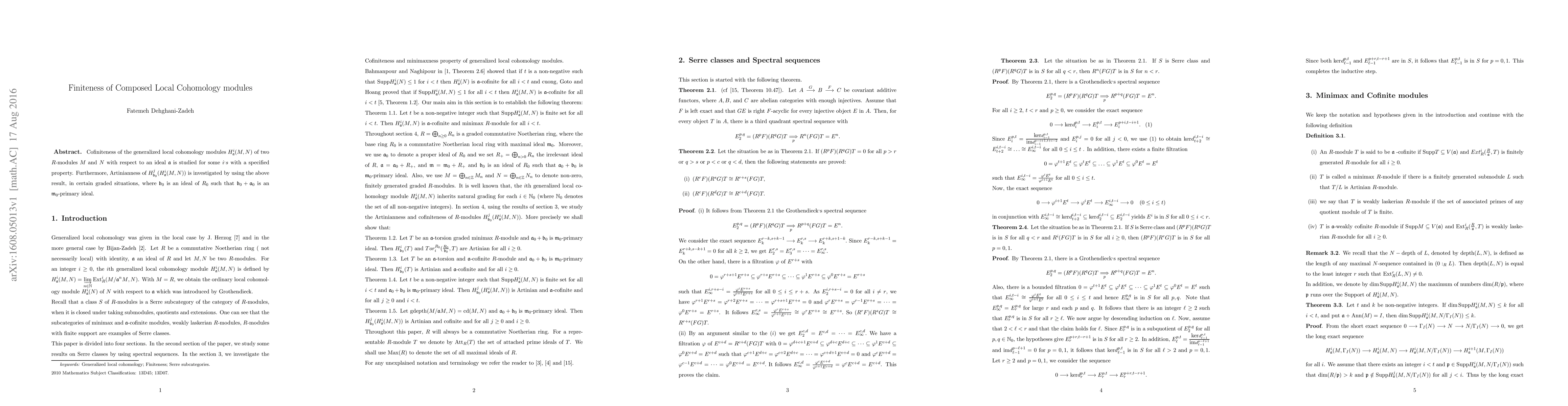 Cofiniteness of the generalized local cohomology modules Hai(M, N) of two R-modules M and N with respect to an ideal a is studied for some i,s with a specified property. Furthermore, Artinianness of Hbj 0(Hai(M, N)) is investigated by using the above result, in certain graded situations, where b 0 is an ideal of R 0 such that b 0 + a 0 is an m 0-primary ideal.