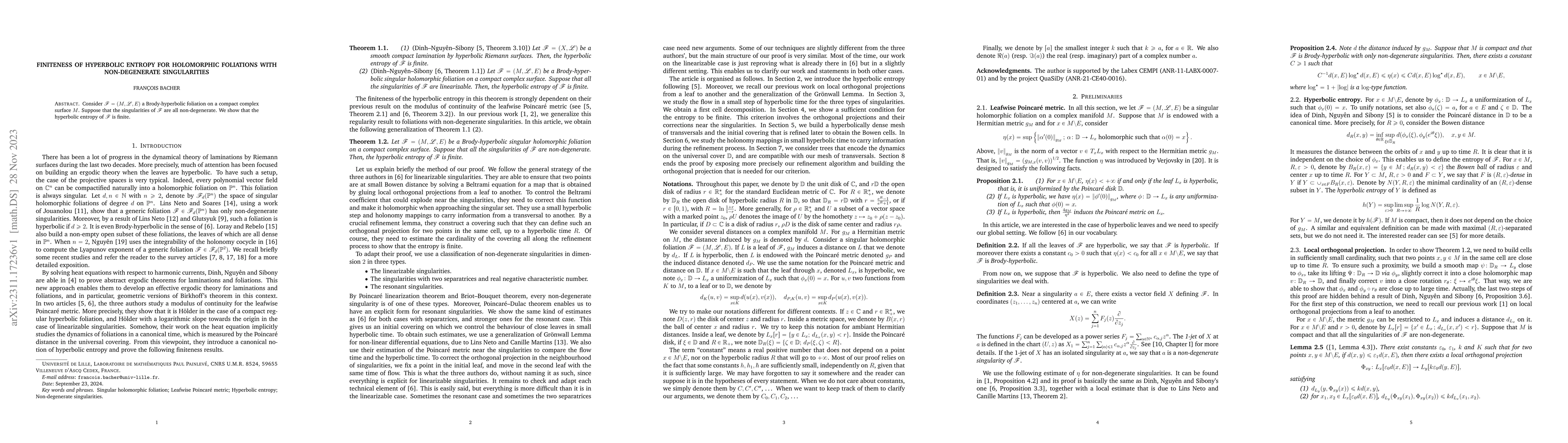 Summary: The paper demonstrates that for a Brody-hyperbolic foliation on a compact complex surface with all non-degenerate singularities, the hyperbolic entropy remains finite. This result provides insight into the behavior of such foliations.