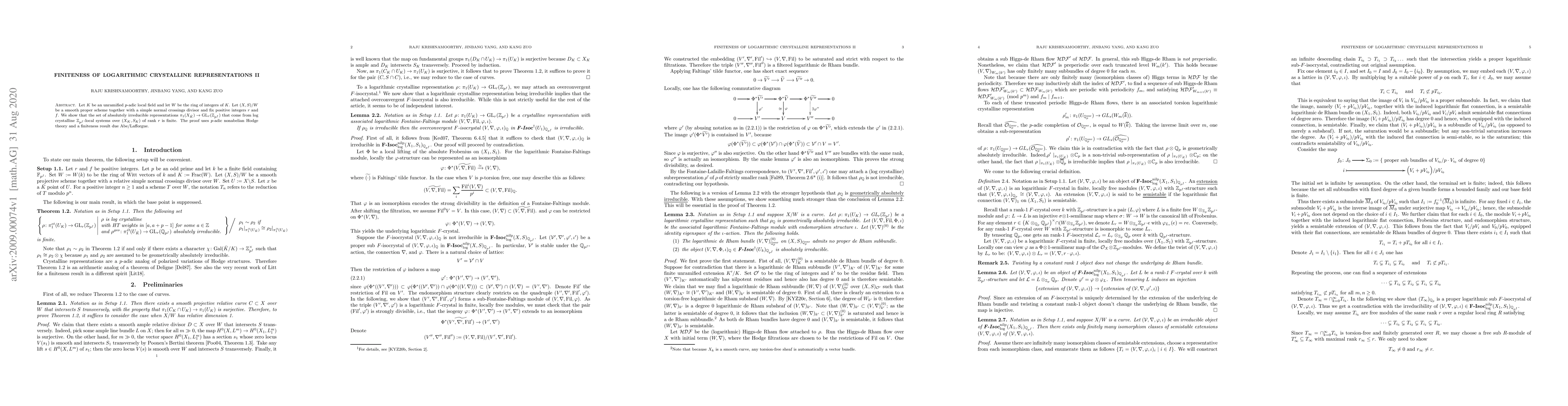 Let $K$ be an unramified $p$-adic local field and let $W$ be the ring of integers of $K$. Let $(X,S)/W$ be a smooth proper scheme together with a simple normal crossings divisor and fix positive integers $r$ and $f$. We show that the set of absolutely irreducible representations $\pi_1(X_{\bar K})\rightarrow \mathrm{GL}_r(\mathbb{Z}_{p^f})$ that come from log crystalline $\mathbb Z_{p^f}$-local systems over $(X_K,S_K)$ of rank $r$ is finite. The proof uses $p$-adic nonabelian Hodge theory and a finiteness result due Abe/Lafforgue.