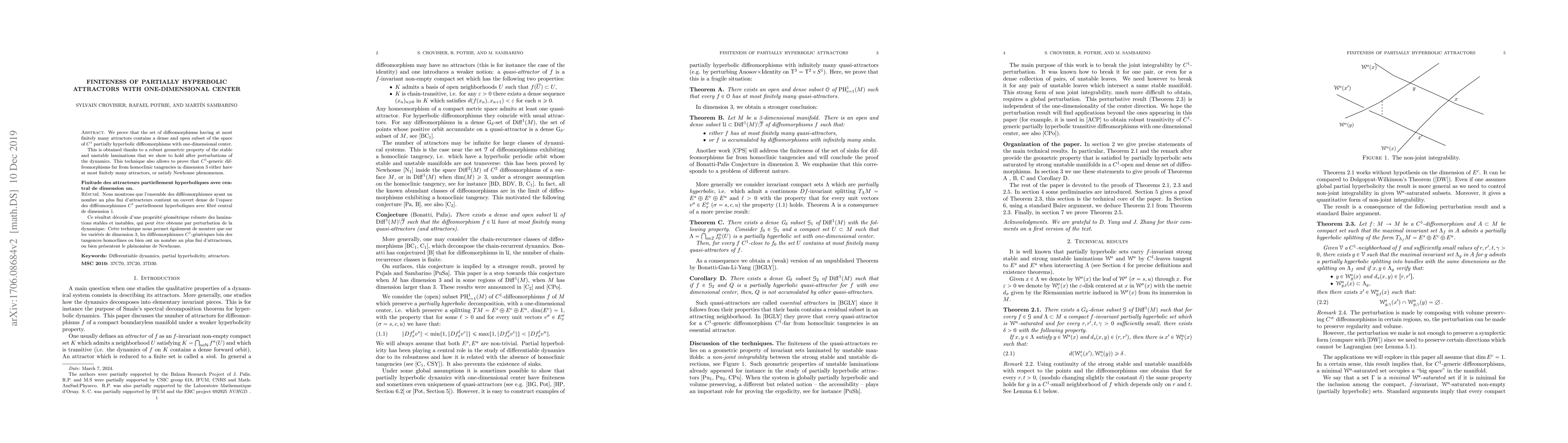 Summary: We prove that $C^1$ partially hyperbolic diffeomorphisms with one-dimensional centers having finitely many attractors form a dense and open subset in their respective space. This result leverages robust geometric properties of partially hyperbolic laminations that persist under dynamic perturbations.