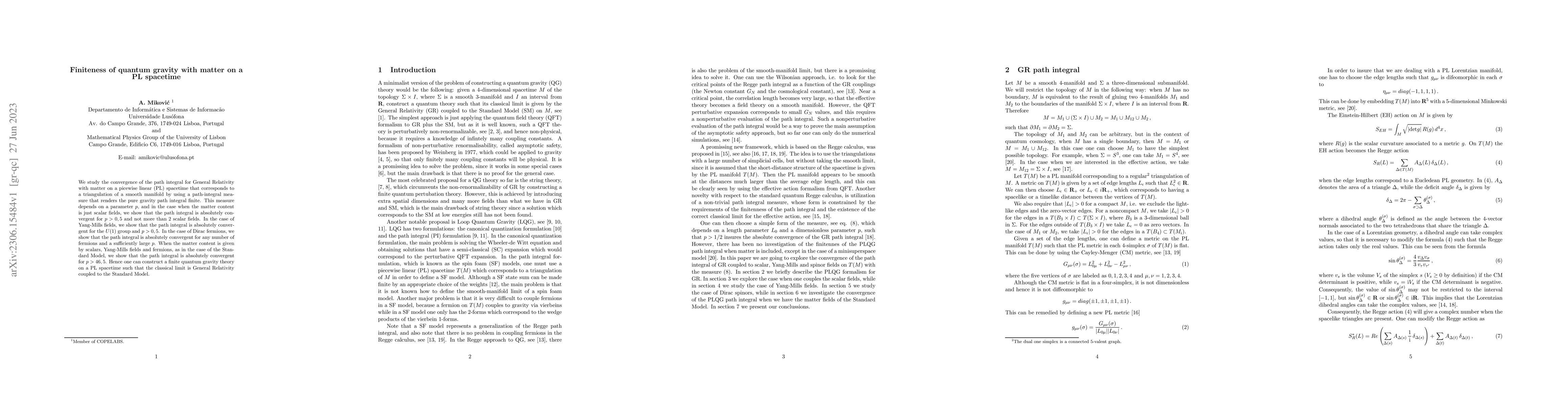 This paper demonstrates that the path integral for quantum gravity with matter on a piecewise linear spacetime is finite under certain conditions, showing convergence for various types of fields and proving absolute convergence for parameters above specific thresholds. The study concludes that a finite quantum gravity theory can be constructed for General Relativity coupled to the Standard Model.