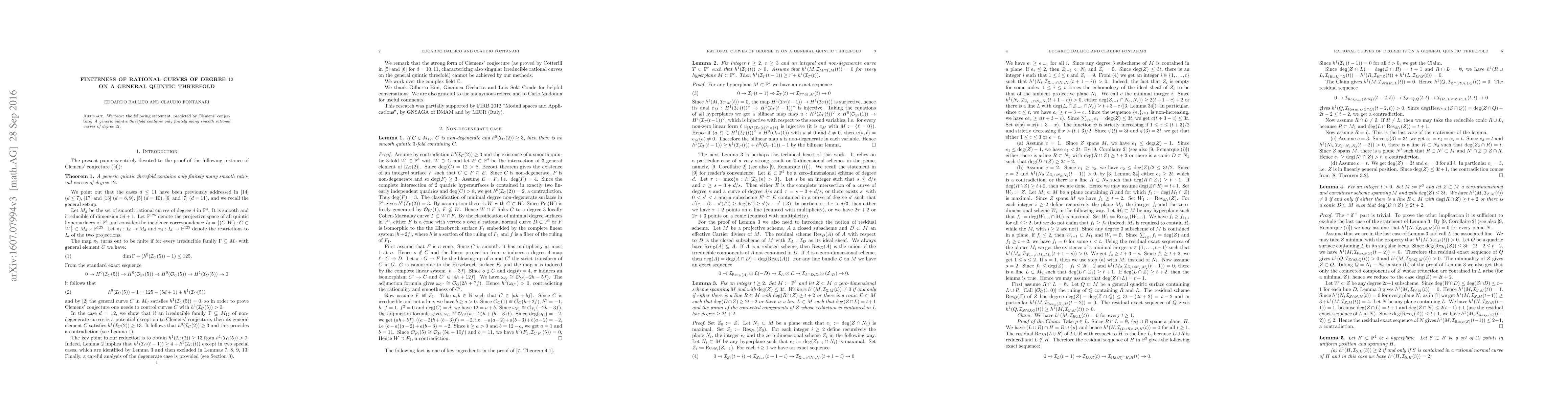 Summary: This paper proves Clemens' conjecture stating that a generic quintic threefold contains only a finite number of smooth rational curves of degree 12. This result supports the broader understanding of the complexity and structure of higher-dimensional algebraic varieties.
