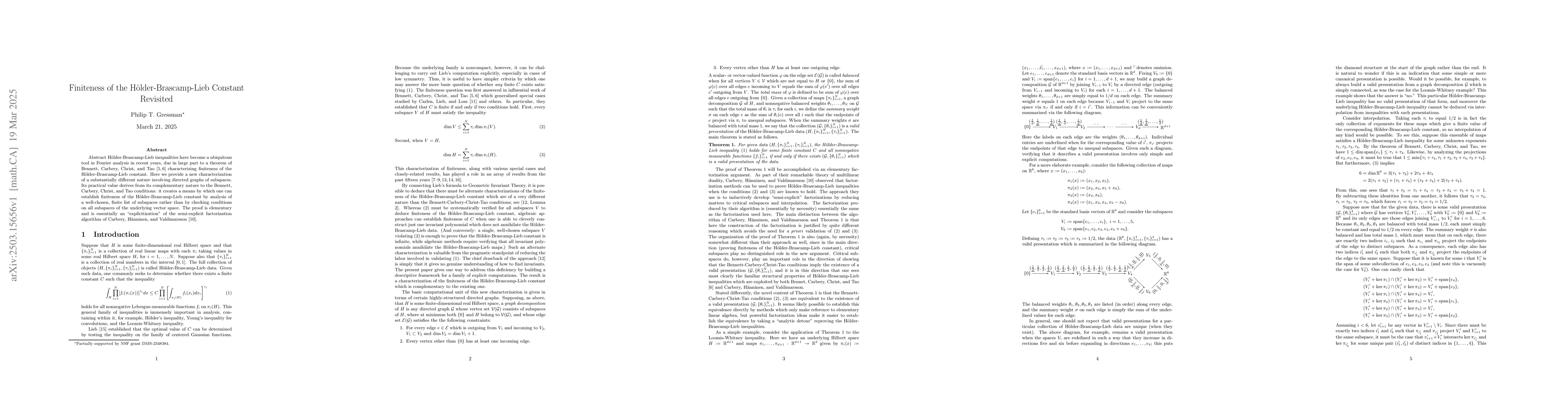 The paper introduces a new characterization of the Hölder-Brascamp-Lieb constant finiteness through directed graphs of subspaces, providing an alternative and more practical approach to existing conditions.
