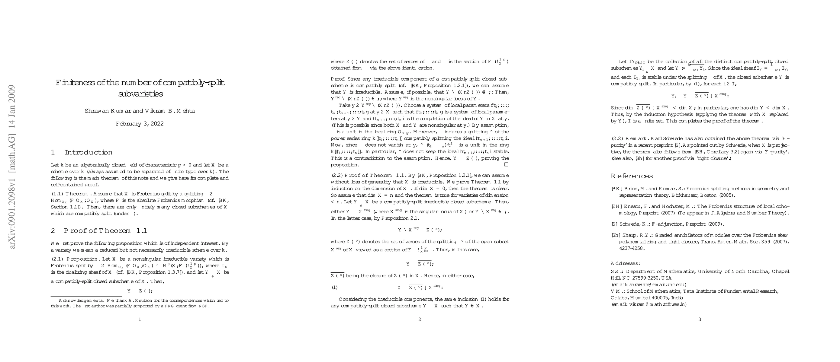 Summary: This paper demonstrates that a Frobenius split variety contains only a finite number of closed subvarieties that are compatibly-split, establishing a finiteness result in algebraic geometry.