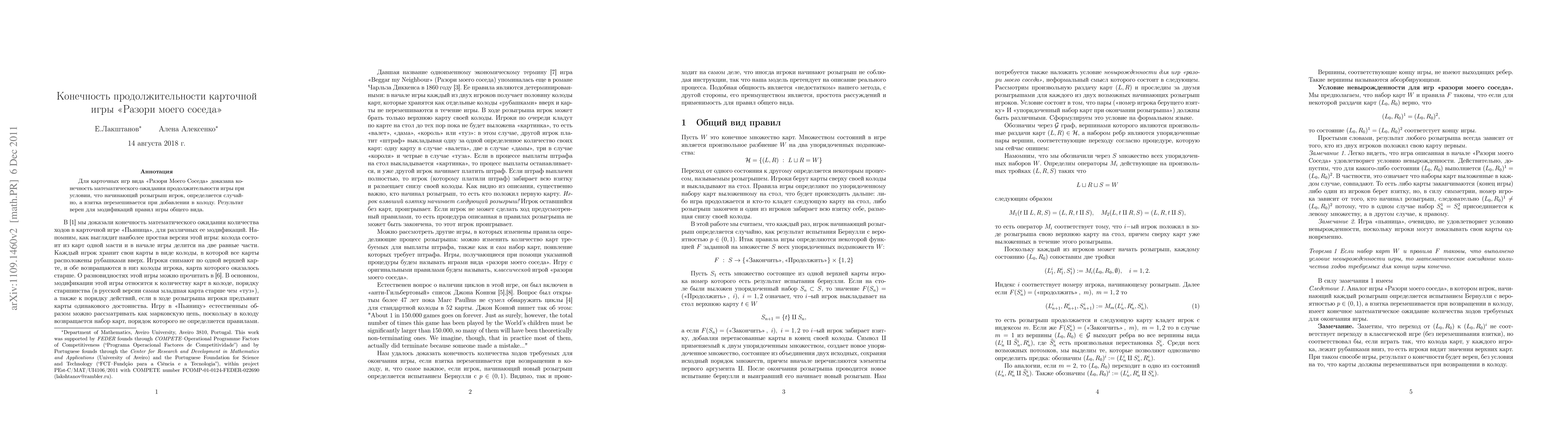 This work extends previous research on card games by focusing on the finiteness of playing time and providing a rigorous mathematical proof under specified randomized conditions.