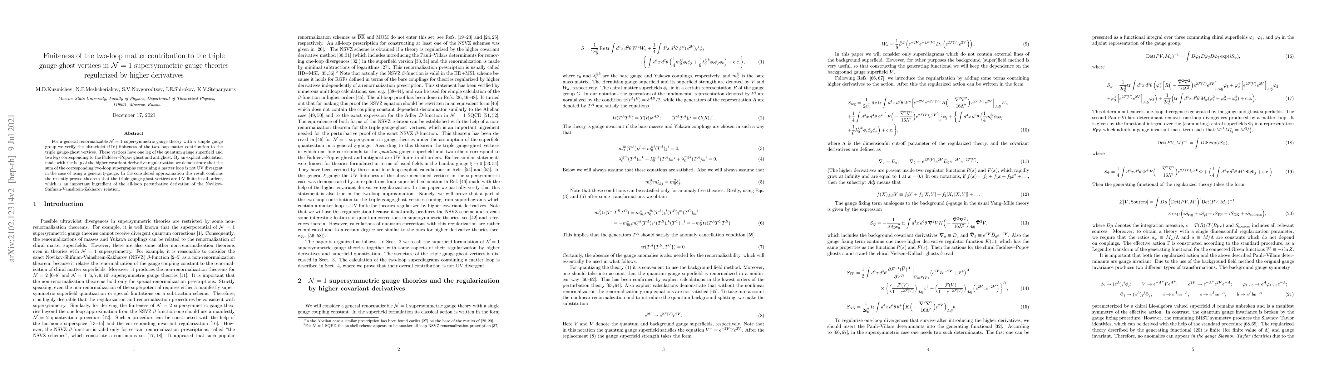 This paper verifies the ultraviolet finiteness of two-loop matter contributions to triple gauge-ghost vertices in ${\cal N}=1$ supersymmetric gauge theories, confirming the theorem that these vertices are finite in all orders, using higher covariant derivative regularization.