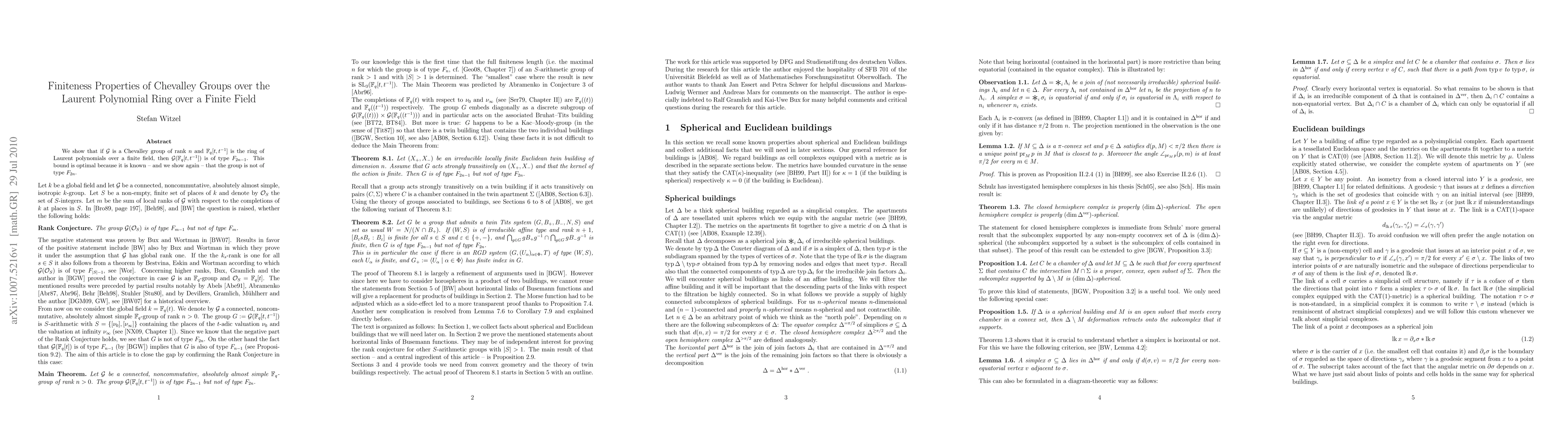Summary: This paper demonstrates that Chevalley groups of rank n over the Laurent polynomial ring F_q[t,t^{-1}] exhibit type F_{2n-1}, establishing an optimal bound as the group cannot achieve type F_{2n}.