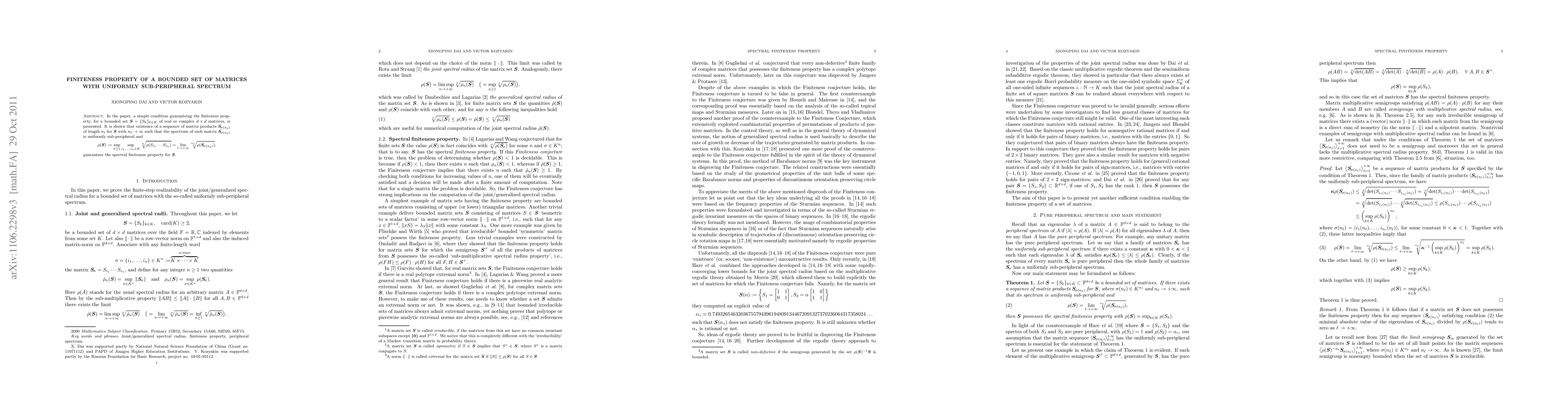 This paper establishes a condition ensuring the finiteness property for a bounded set of matrices, demonstrating that a sequence of matrix products with uniformly sub-peripheral spectra converging to the joint spectral radius guarantees this spectral finiteness.