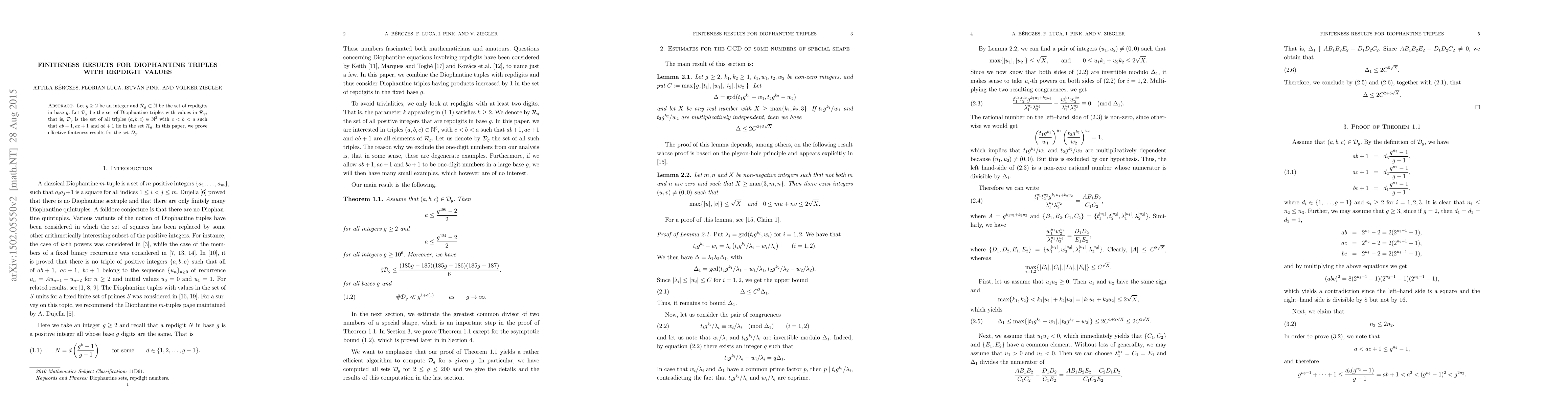 Researchers prove finiteness results for Diophantine triples with repdigit values in base g, establishing effective limits on the set of such triples.
