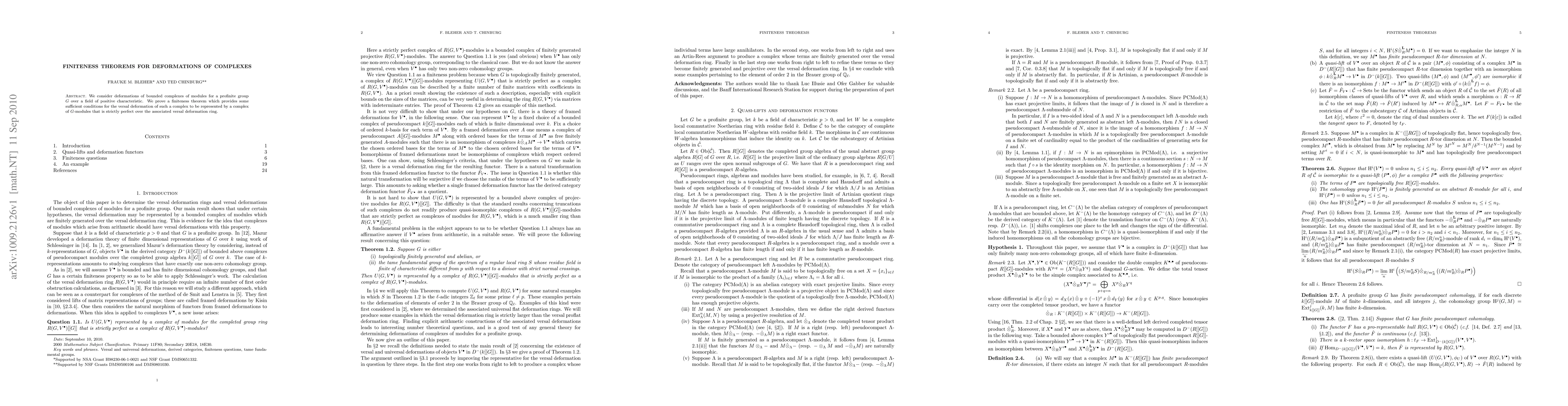 The paper proves a finiteness theorem for deformations of bounded complexes of modules for a profinite group G over a field of positive characteristic, establishing conditions for the versal deformation to be represented by strictly perfect G-modules.