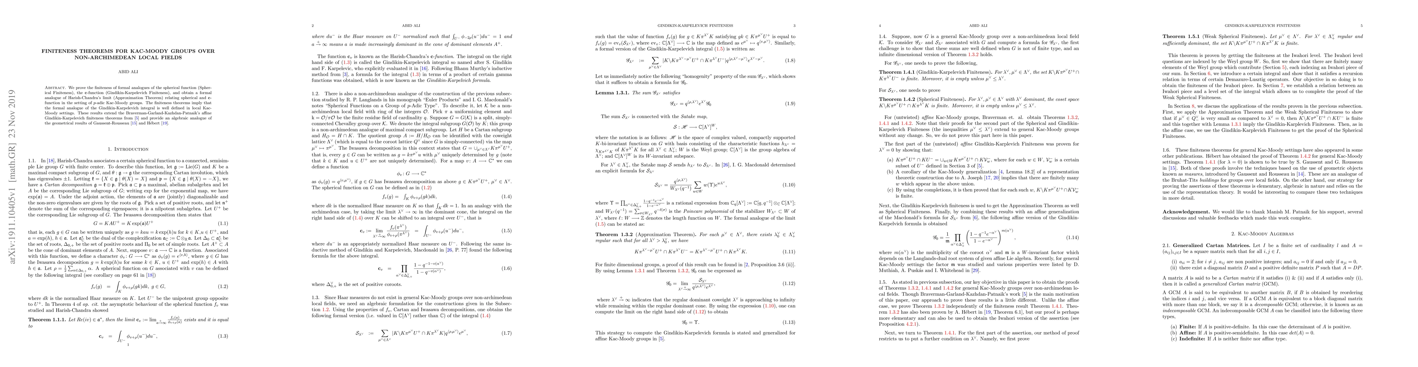 We prove the finiteness of formal analogues of the spherical function (Spherical Finiteness), the ${\mathbf c}$-function (Gindikin-Karpelevich Finiteness), and obtain a formal analogue of Harish-Chandra's limit (Approximation Theorem) relating spherical and ${\mathbf c}$-function in the setting of $p$-adic Kac-Moody groups. The finiteness theorems imply that the formal analogue of the Gindikin-Karpelevich integral is well defined in local Kac-Moody settings. These results extend the Braverman-Garland-Kazhdan-Patnaik's affine Gindikin-Karpelevich finiteness theorems and provide an algebraic analogue of the geometrical results of Gaussent-Rousseau and H\'{e}bert.