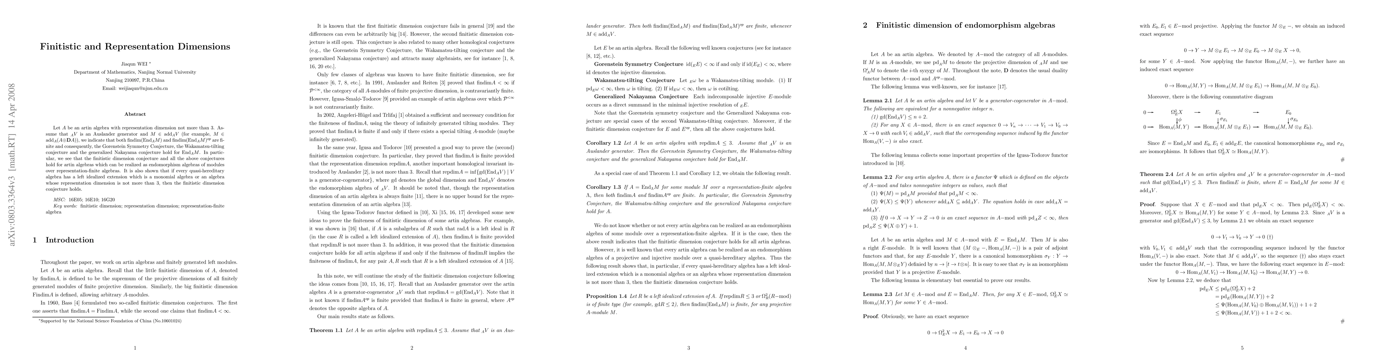 This paper proves several conjectures regarding finitistic and representation dimensions for artin algebras realized as endomorphism algebras of modules over representation-finite algebras. It also demonstrates that the finitistic dimension conjecture holds if quasi-hereditary algebras have specific left idealized extensions.