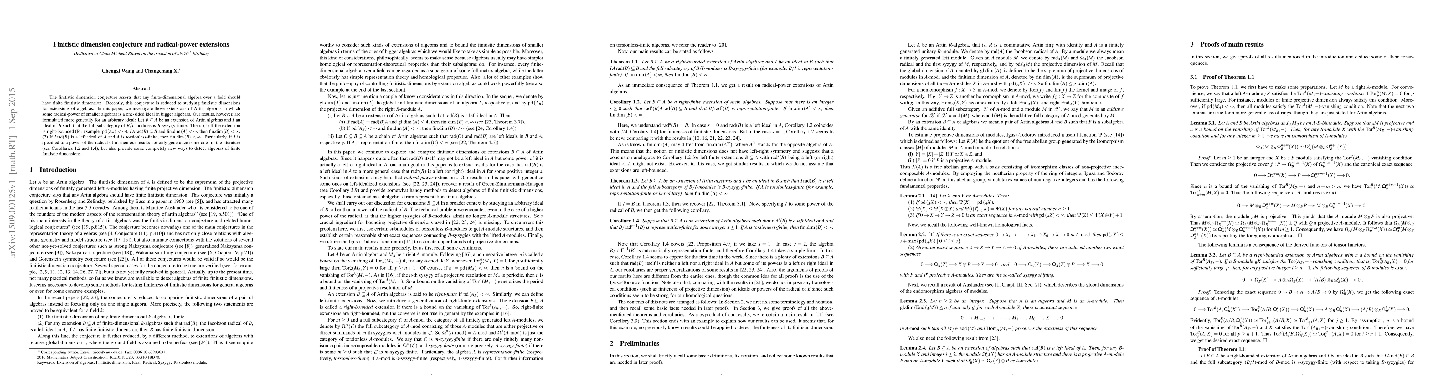 The paper investigates finitistic dimension conjecture by studying radical-power extensions of Artin algebras, focusing on conditions under which the finitistic dimension remains finite.