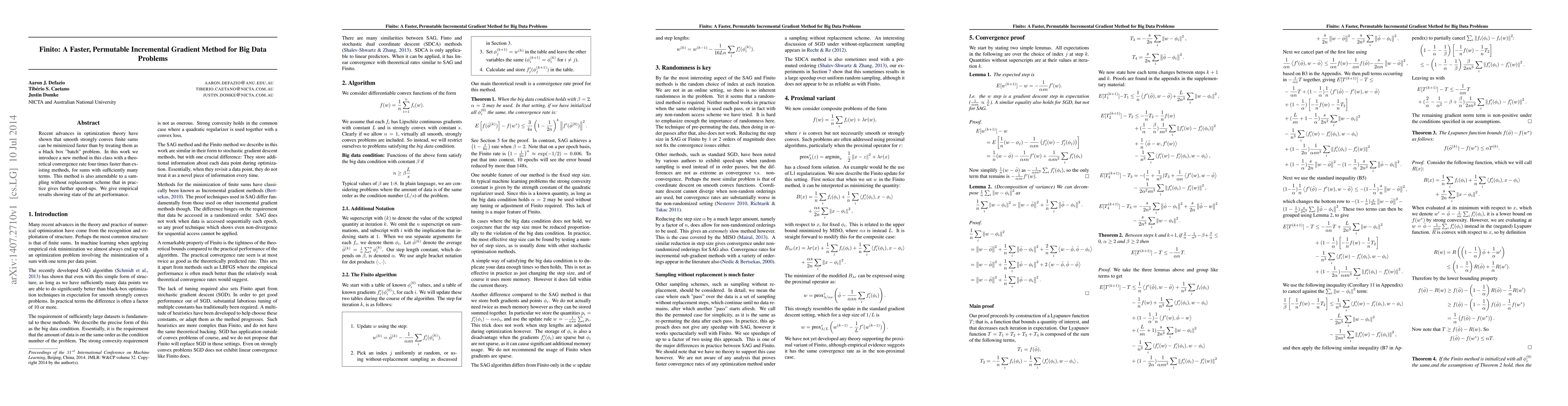Recent advances in optimization theory have shown that smooth strongly convex finite sums can be minimized faster than by treating them as a black box "batch" problem. In this work we introduce a new method in this class with a theoretical convergence rate four times faster than existing methods, for sums with sufficiently many terms. This method is also amendable to a sampling without replacement scheme that in practice gives further speed-ups. We give empirical results showing state of the art performance.