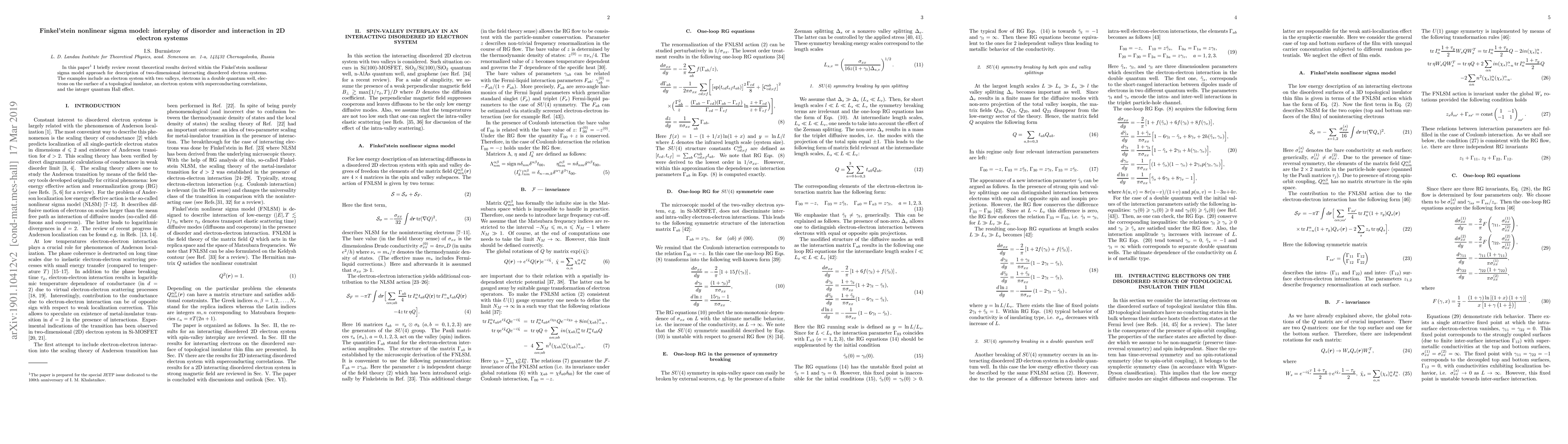 This paper reviews recent theoretical findings using the Finkel'stein nonlinear sigma model to describe 2D interacting disordered electron systems, including systems with valley effects, double quantum wells, topological insulators, superconducting correlations, and the integer quantum Hall effect.