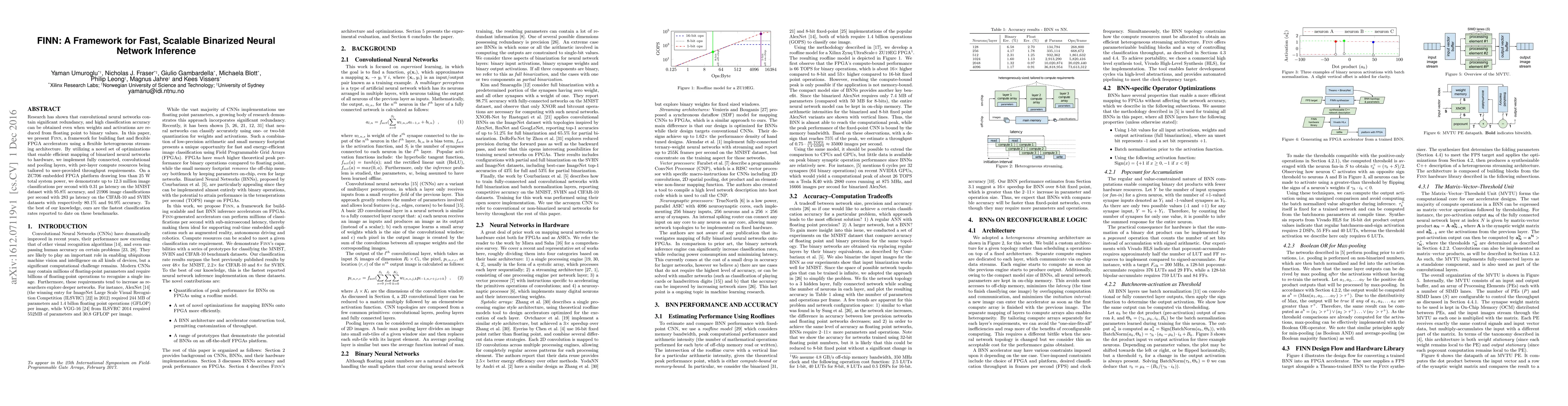 This paper introduces FINN, a framework for fast, scalable inference of binarized neural networks on FPGAs, achieving high classification rates with minimal power consumption. It demonstrates record-breaking speeds on MNIST, CIFAR-10, and SVHN datasets with minimal latency and power usage.