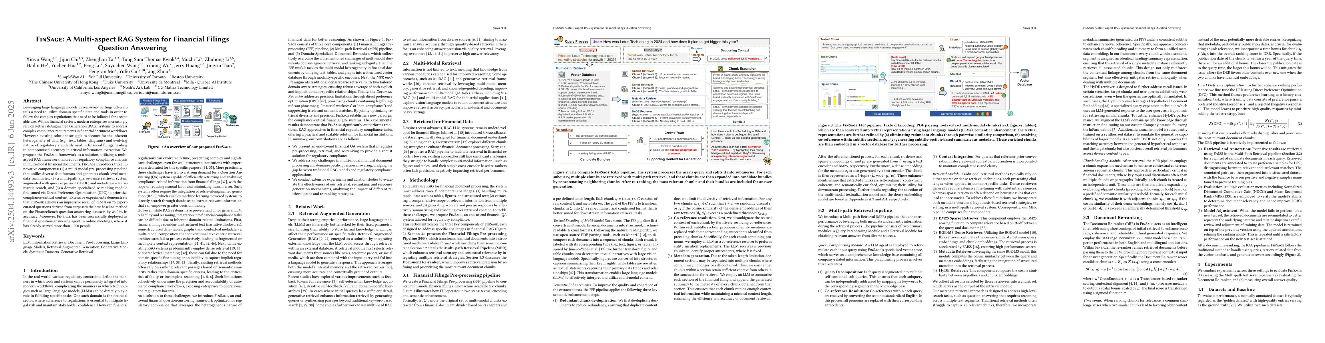 FinSage introduces a multi-modal pre-processing pipeline, a multi-path sparse-dense retrieval system with HyDE and metadata-aware semantic search, and a domain-specialized re-ranking module fine-tuned via DPO, all tailored for regulatory compliance analysis in multi-modal financial documents.