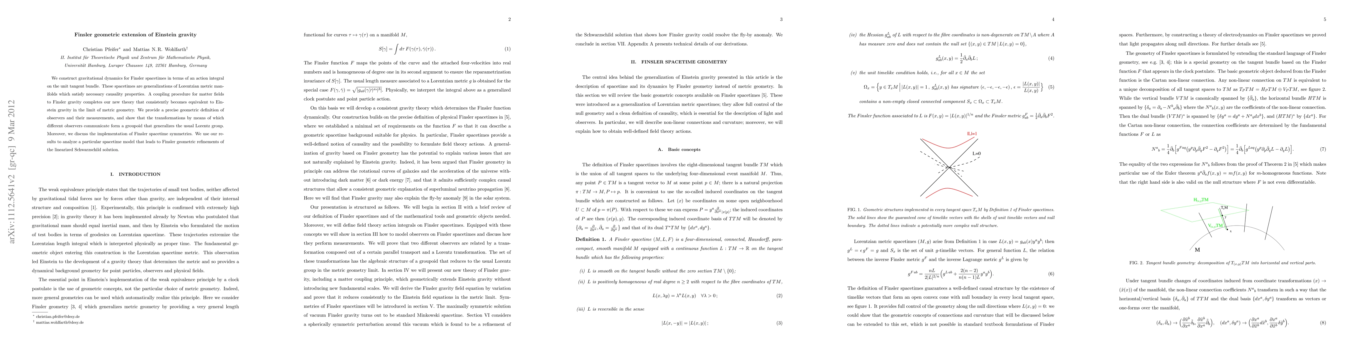 This paper develops a gravitational theory based on Finsler spacetimes, extending Einstein gravity through an action integral on the unit tangent bundle. It introduces a coupling mechanism for matter fields and demonstrates equivalence to Einstein gravity in the metric limit, while also discussing the geometric definition of observers and the generalized groupoid for transformations.