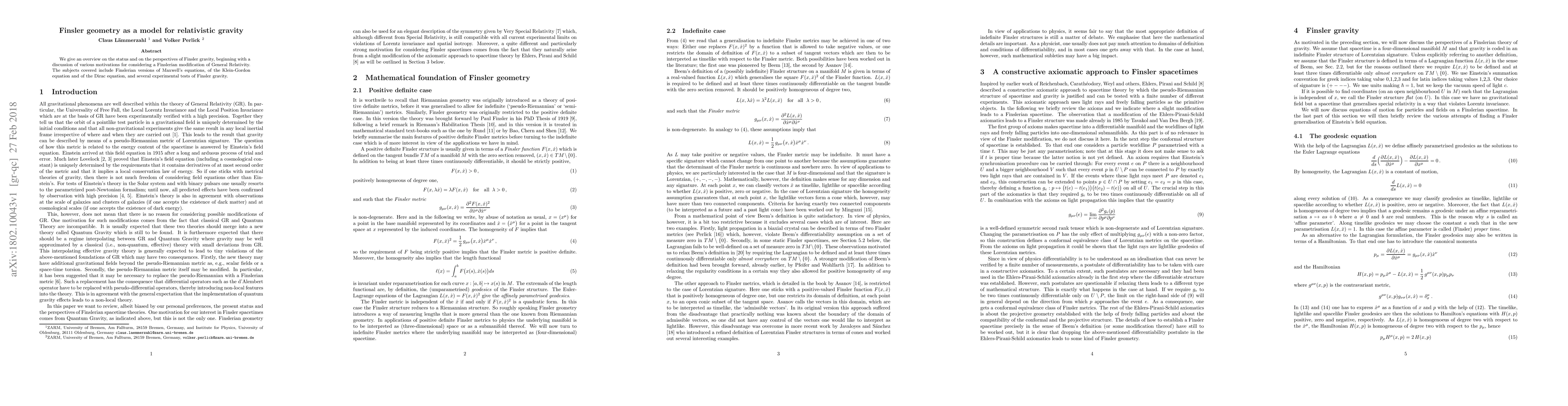 We give an overview on the status and on the perspectives of Finsler gravity, beginning with a discussion of various motivations for considering a Finslerian modification of General Relativity. The subjects covered include Finslerian versions of Maxwell's equations, of the Klein-Gordon equation and of the Dirac equation, and several experimental tests of Finsler gravity.