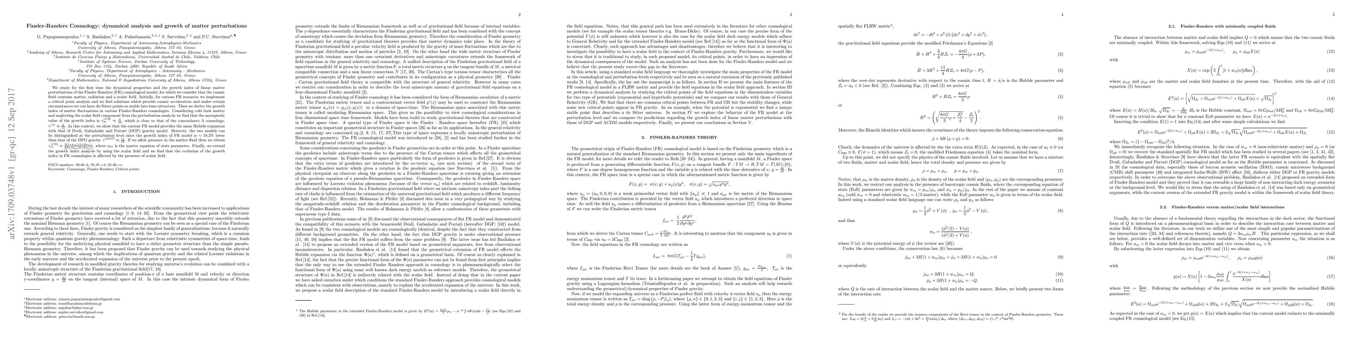 The Finsler-Randers Cosmology model is analyzed for its dynamical properties and growth of matter perturbations, with results showing a close match to the concordance Lambda cosmology in certain scenarios, but distinguishable at the perturbation level from other models like DGP gravity.