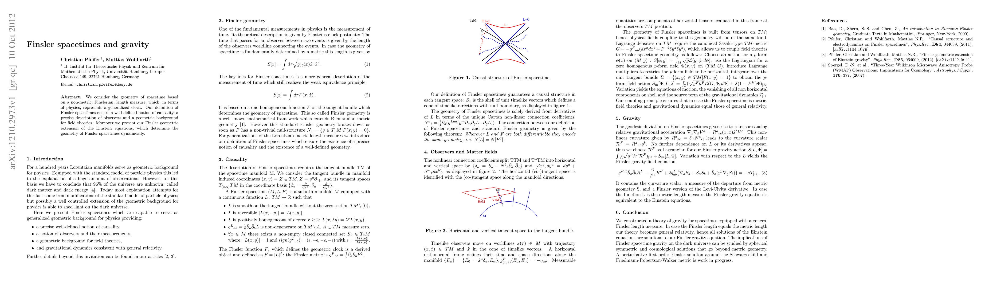 Summary: This paper explores Finsler spacetimes, a non-metric geometric framework that generalizes the concept of spacetime with a new length measure, providing a robust notion of causality and a basis for field theories; it also extends Einstein's equations to this Finslerian context.