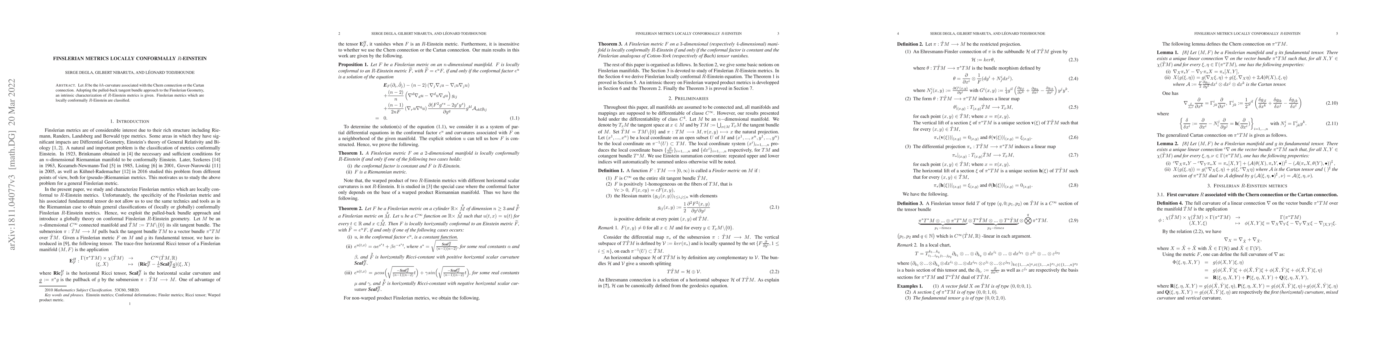 Let $R$ be the $hh$-curvature associated with the Chern connection or the Cartan connection. Adopting the pulled-back tangent bundle approach to the Finslerian Geometry, an intrinsic characterization of $R$-Einstein metrics is given. Finslerian metrics which are locally conformally $R$-Einstein are classified.