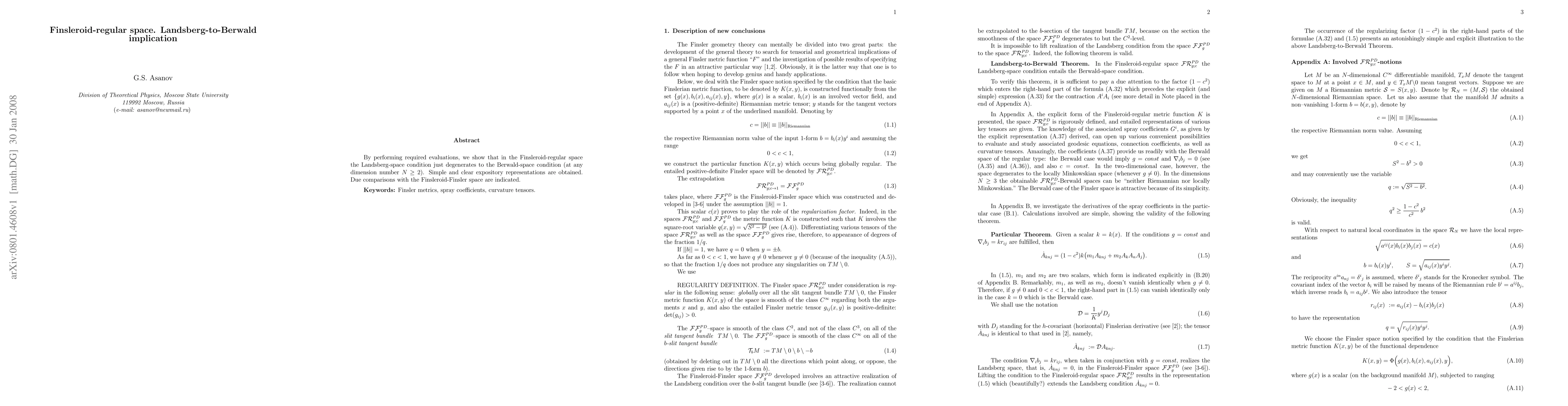 This paper demonstrates that in Finsleroid-regular spaces, the Landsberg-space condition simplifies to the Berwald-space condition for dimensions $N\ge2$. It provides clear expository representations and compares these findings with the Finsler space.