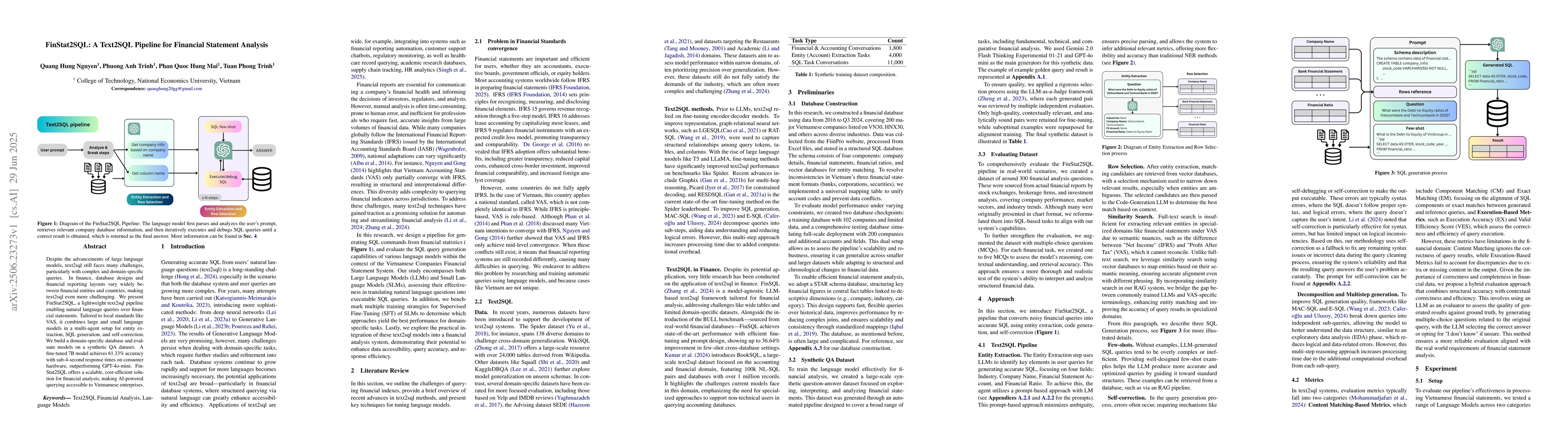 Despite the advancements of large language models, text2sql still faces many challenges, particularly with complex and domain-specific queries. In finance, database designs and financial reporting layouts vary widely between financial entities and countries, making text2sql even more challenging. We present FinStat2SQL, a lightweight text2sql pipeline enabling natural language queries over financial statements. Tailored to local standards like VAS, it combines large and small language models in a multi-agent setup for entity extraction, SQL generation, and self-correction. We build a domain-specific database and evaluate models on a synthetic QA dataset. A fine-tuned 7B model achieves 61.33\% accuracy with sub-4-second response times on consumer hardware, outperforming GPT-4o-mini. FinStat2SQL offers a scalable, cost-efficient solution for financial analysis, making AI-powered querying accessible to Vietnamese enterprises.