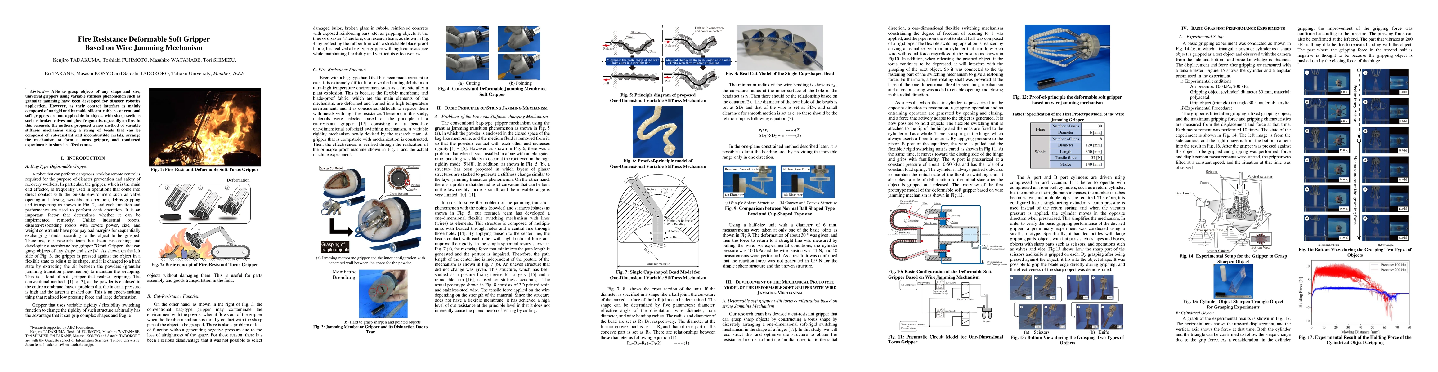 This research introduces a fire-resistant deformable soft gripper utilizing a wire jamming mechanism with cut-resistant, non-combustible metal beads, enabling it to grasp objects of any shape safely, even in fire scenarios. Experiments demonstrate the gripper's effectiveness in handling hazardous objects like broken valves and glass fragments.