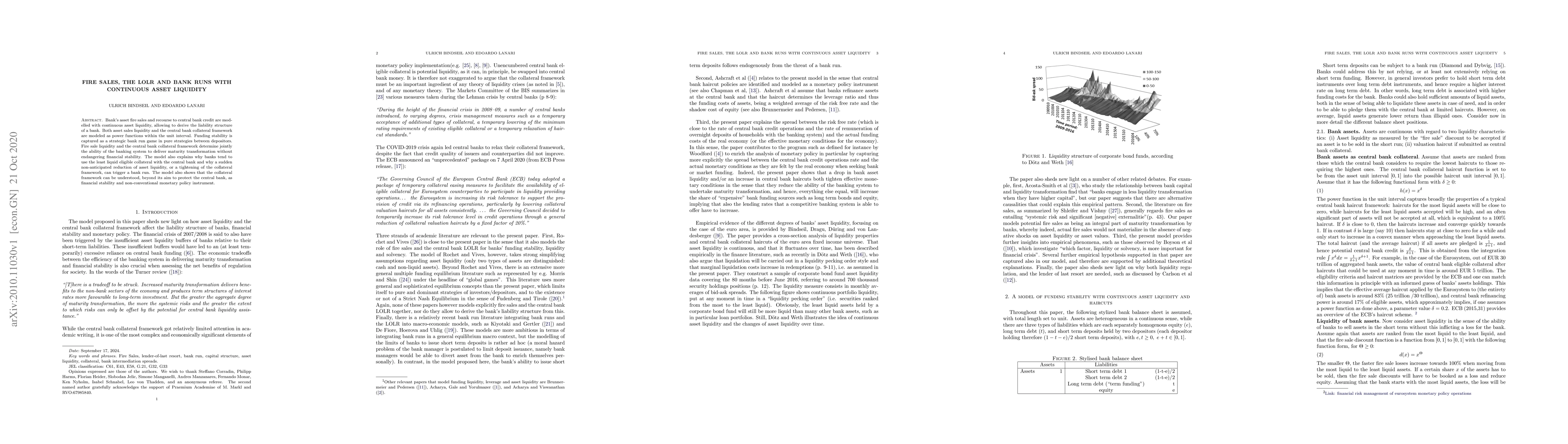 Bank's asset fire sales and recourse to central bank credit are modelled with continuous asset liquidity, allowing to derive the liability structure of a bank. Both asset sales liquidity and the central bank collateral framework are modeled as power functions within the unit interval. Funding stability is captured as a strategic bank run game in pure strategies between depositors. Fire sale liquidity and the central bank collateral framework determine jointly the ability of the banking system to deliver maturity transformation without endangering financial stability. The model also explains why banks tend to use the least liquid eligible collateral with the central bank and why a sudden non-anticipated reduction of asset liquidity, or a tightening of the collateral framework, can trigger a bank run. The model also shows that the collateral framework can be understood, beyond its aim to protect the central bank, as financial stability and non-conventional monetary policy instrument.