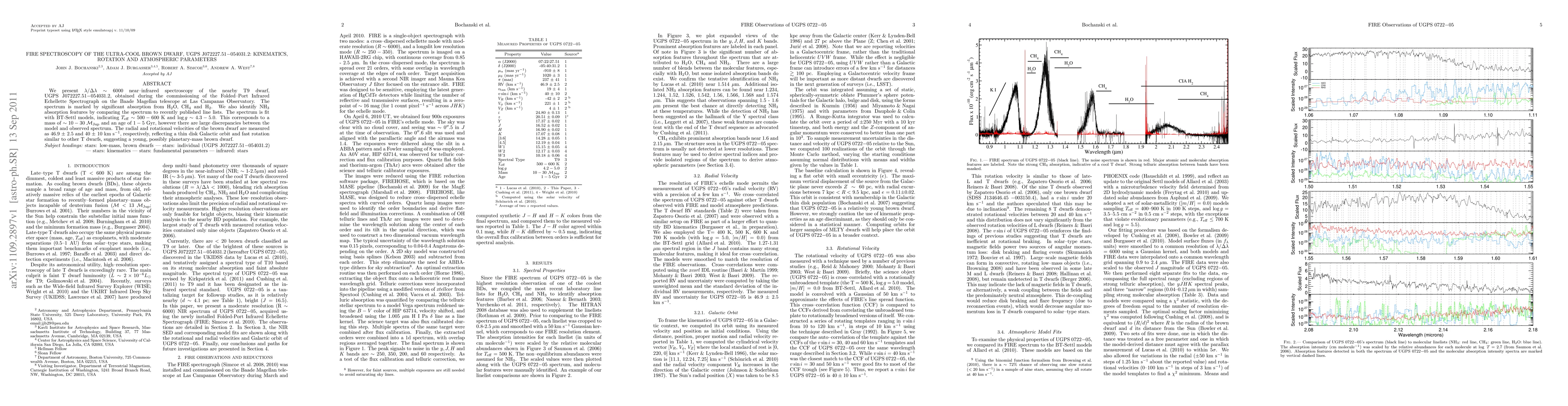 We present {\lambda}/{\Delta}{\lambda} ~ 6000 near-infrared spectroscopy of the nearby T9 dwarf, UGPS J072227.51-054031.2, obtained during the commissioning of the Folded-Port Infrared Echellette Spectrograph on the Baade Magellan telescope at Las Campanas Observatory. The spectrum is marked by significant absorption from H2O, CH4 and H2. We also identify NH3 absorption features by comparing the spectrum to recently published line lists. The spectrum is fit with BT-Settl models, indicating Teff ~ 500-600 K and log g ~ 4.3-5.0. This corresponds to a mass of ~ 10-30 MJup and an age of 1-5 Gyr, however there are large discrepancies between the model and observed spectrum. The radial and rotational velocities of the brown dwarf are measured as 46.9 \pm 2.5 and 40 \pm 10 km/s, respectively, reflecting a thin disk Galactic orbit and fast rotation similar to other T dwarfs, suggesting a young, possibly planetary-mass brown dwarf.
